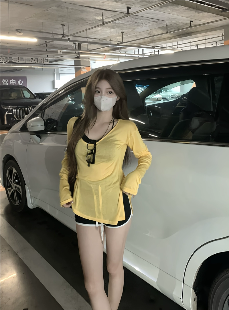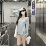 | nameOriginal | Thin round neck loose slit casual long-sleeved T-shirt |