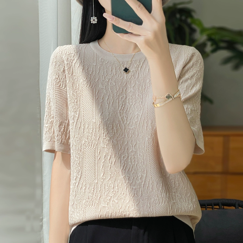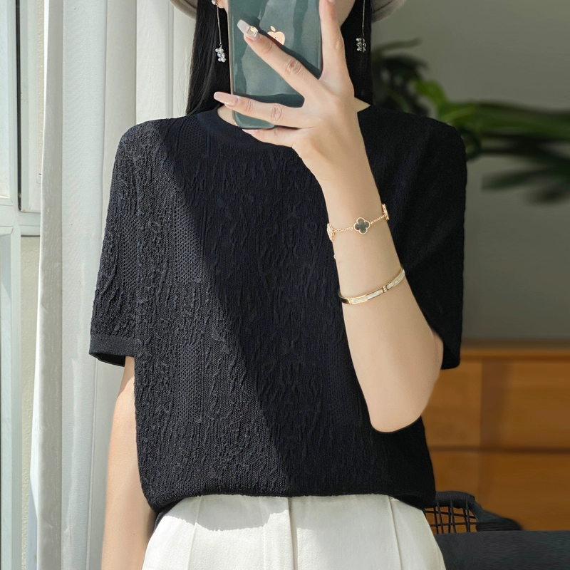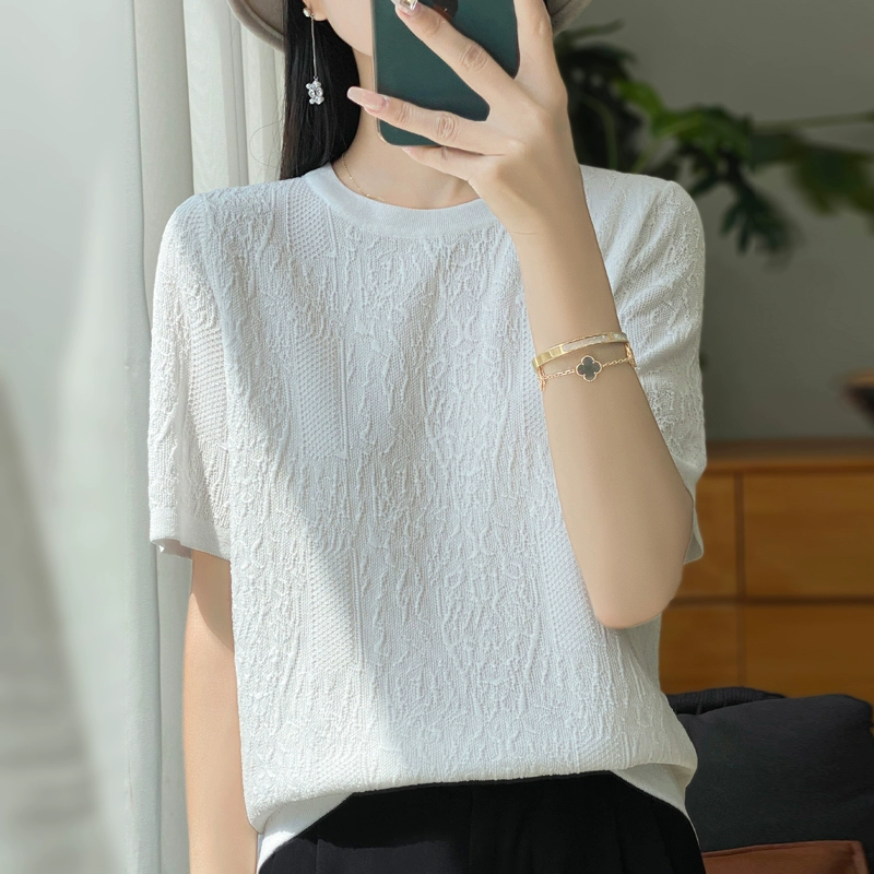 | nameOriginal | Thin round neck pullover, fashionable and versatile short-sleeved sweater |