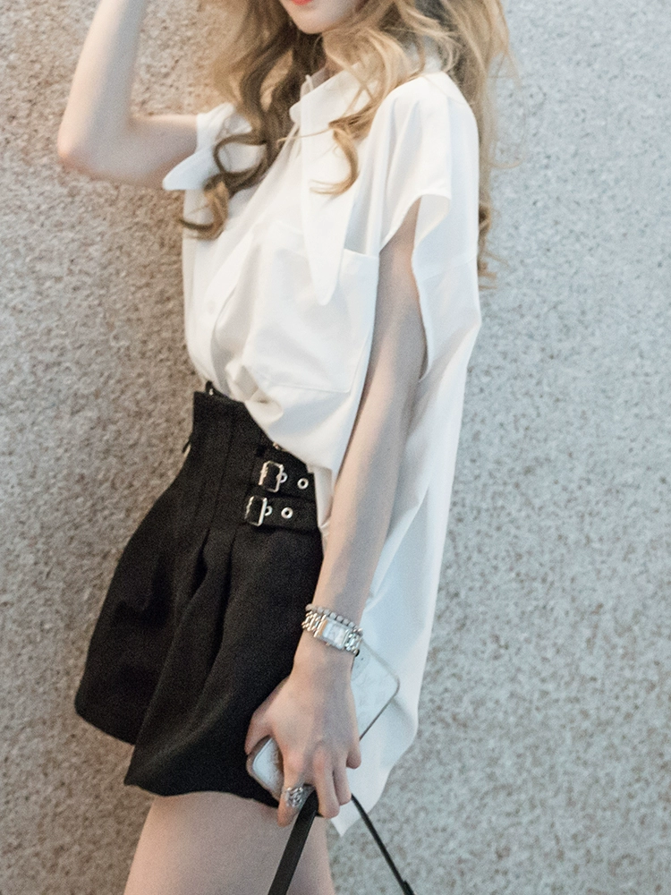 | nameOriginal | Thin short-sleeved niche long peak collar loose chiffon shirt |