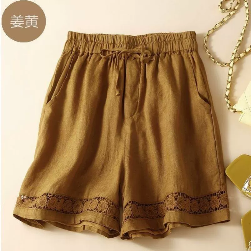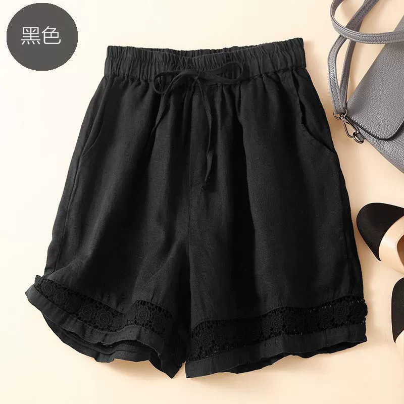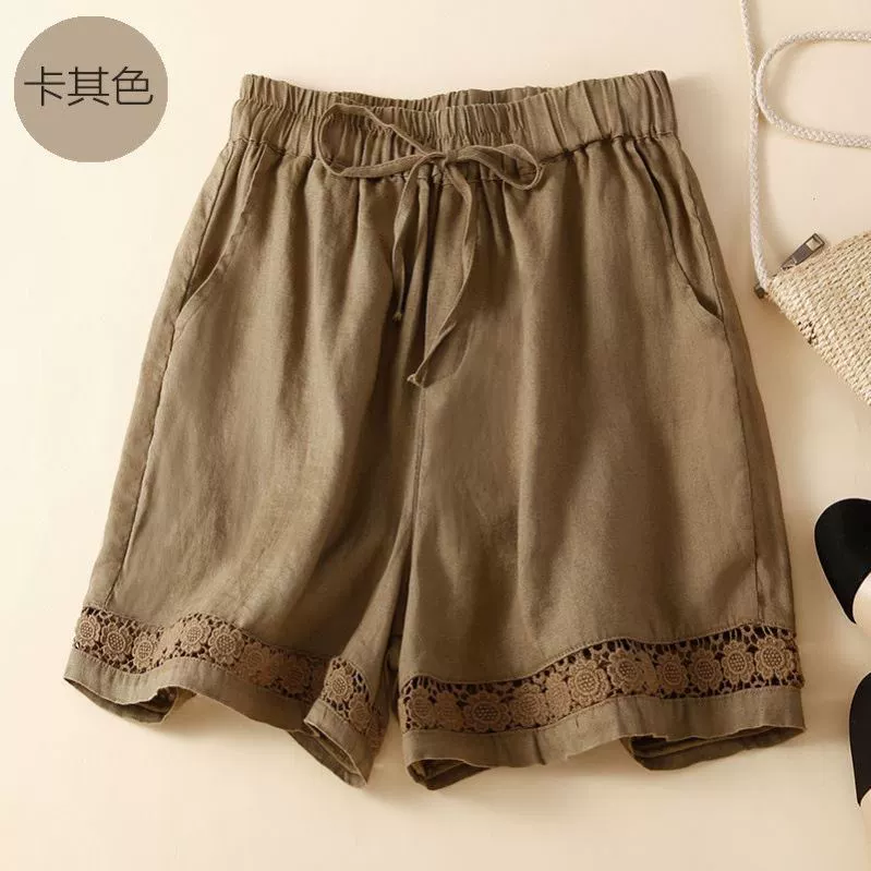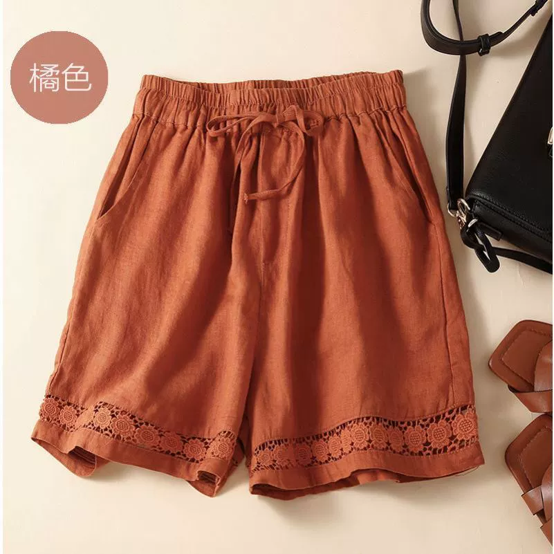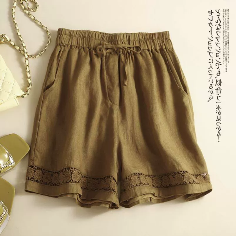 | nameOriginal | Thin shorts hollow lace elastic waist casual linen |