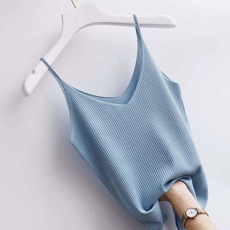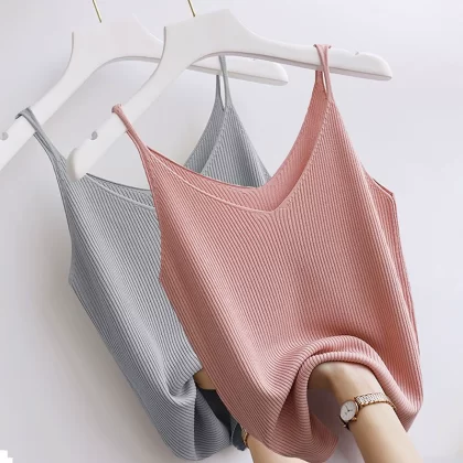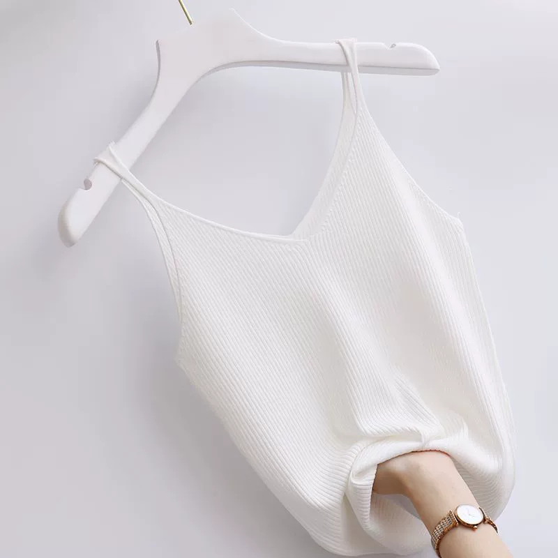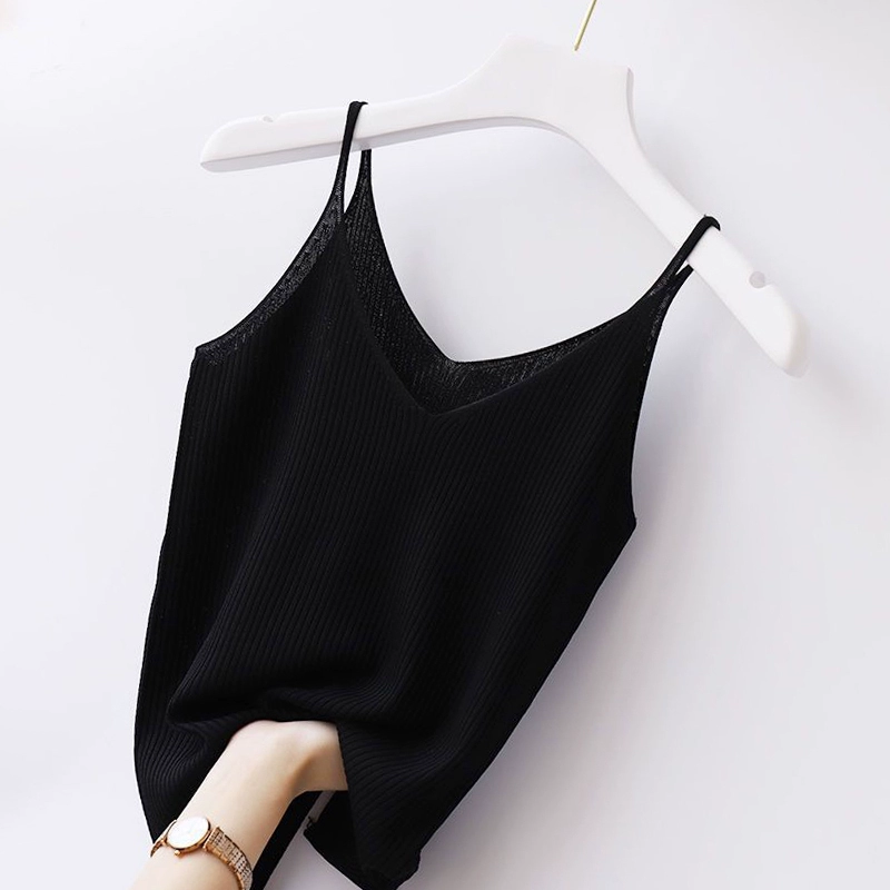 Thin shoulder low collar ice silk suit with camisole