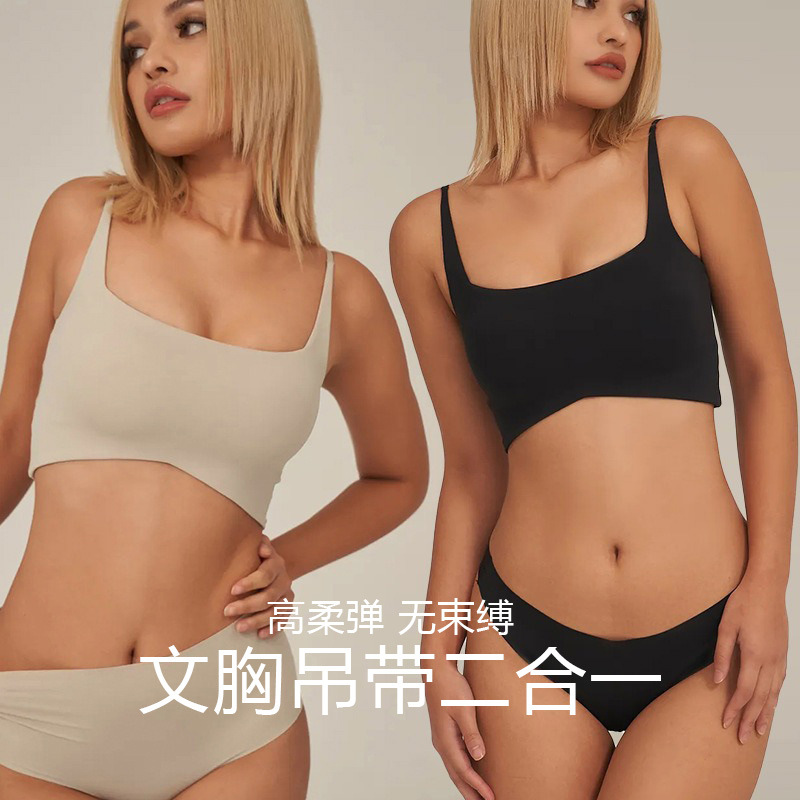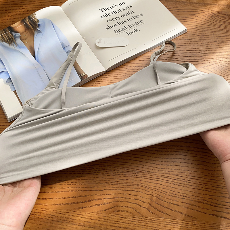 Thin Shoulder Strap Soft Elastic Breathable Sports Bra Sling Two-in-One Women's Breast Collating Tube Top Beauty Back Base Vest Underwear