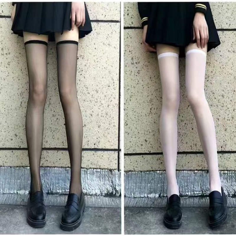 Thin stockings summer black transparent over-the-knee socks cute white Lolita women's high stockings Japanese style thigh socks