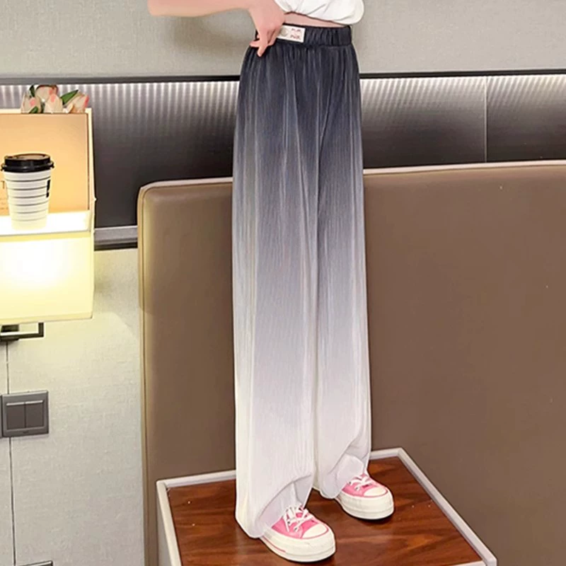 Thin straight-leg girls and older children’s summer ice silk pants