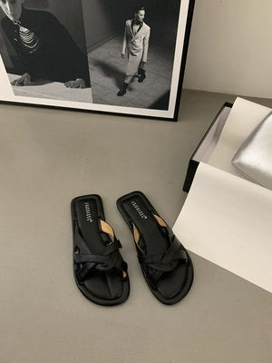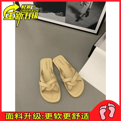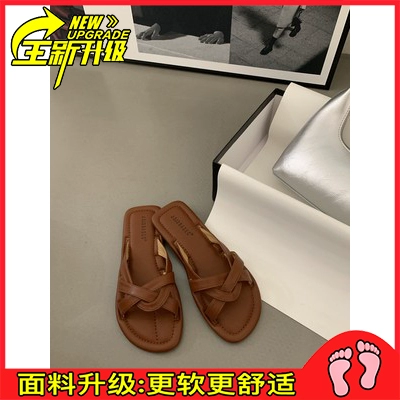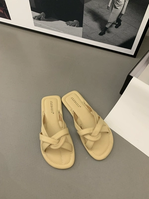 Thin strap slippers for women’s outer wear 2024 summer new style soft flat bottom gentle versatile fairy style beach slippers
