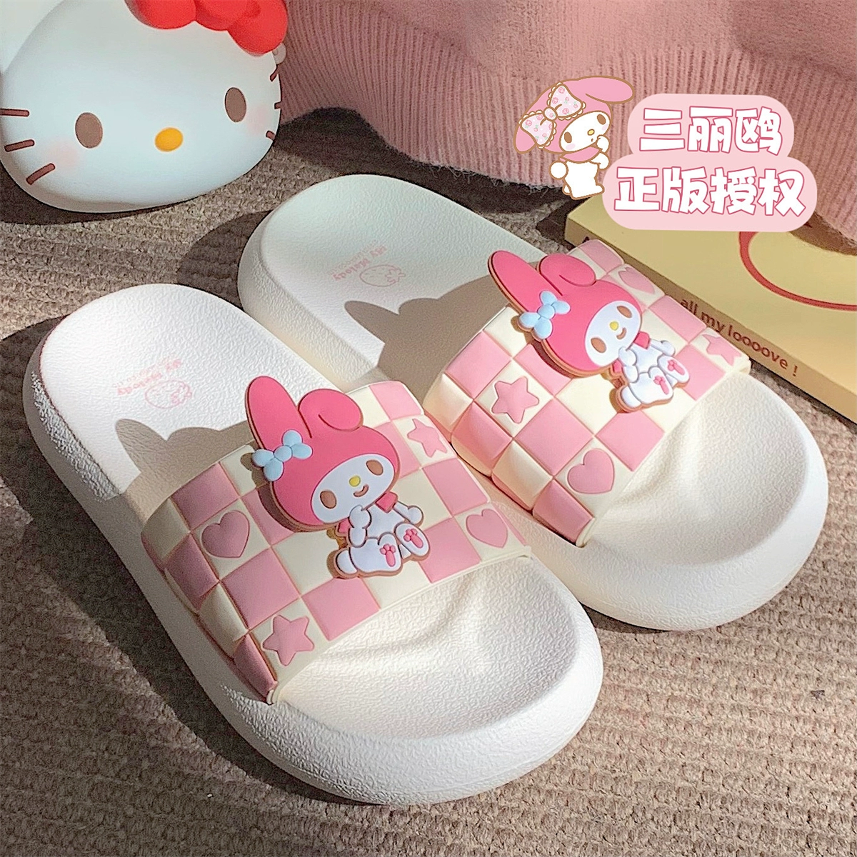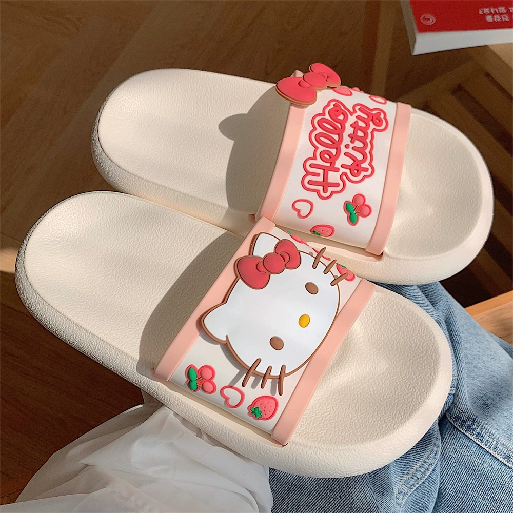 Thin strips of cute Sanrio co-branded Hello Kitty thick-soled slippers for home EVA non-slip and poop-feeling sandals for women summer