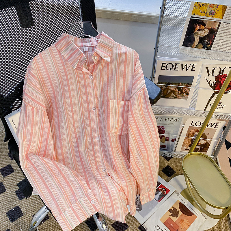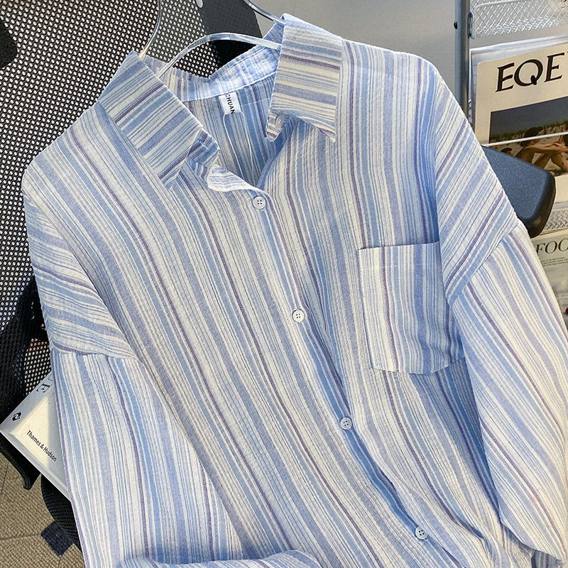 | nameOriginal | Thin Sunscreen Shirt Top Women's Summer Design Sense Loose Lazy Long Sleeve Blue Striped Casual Shirt Trendy Wholesale |