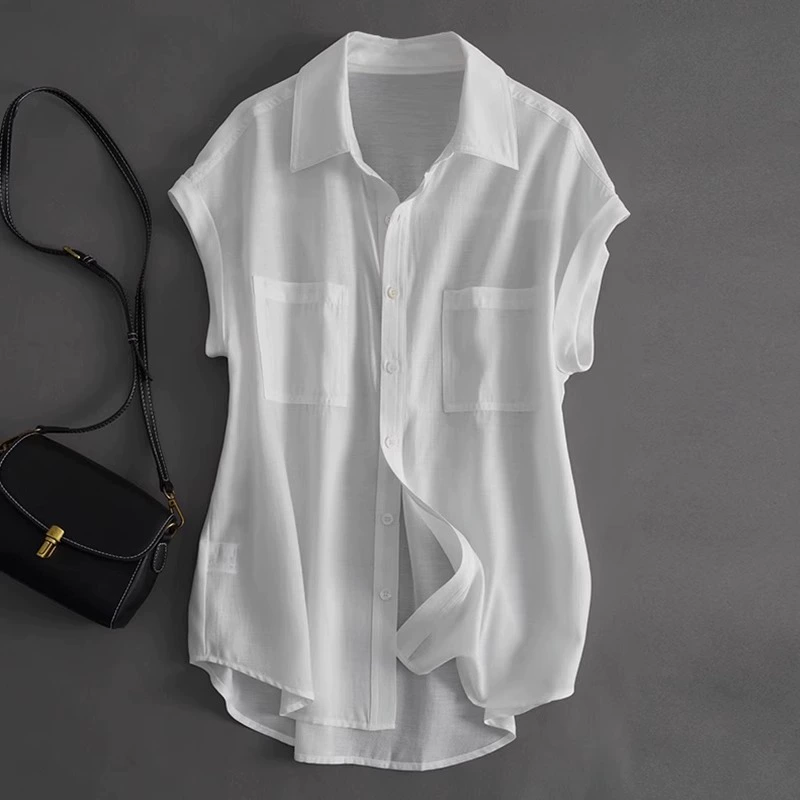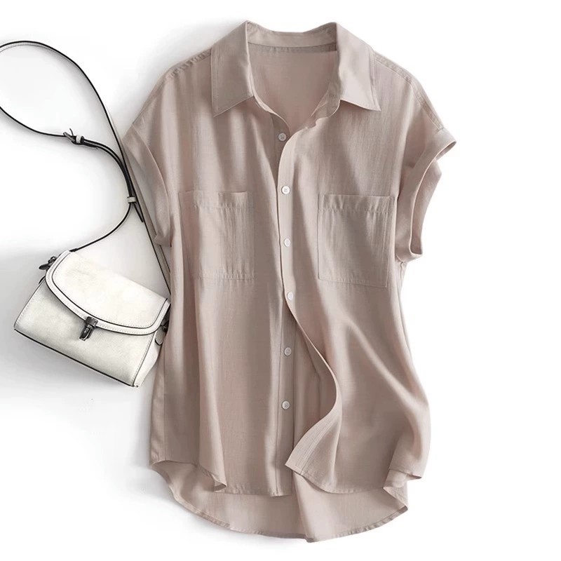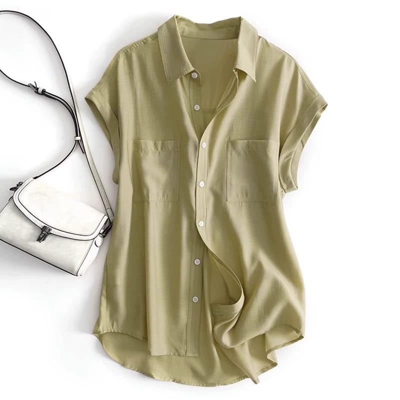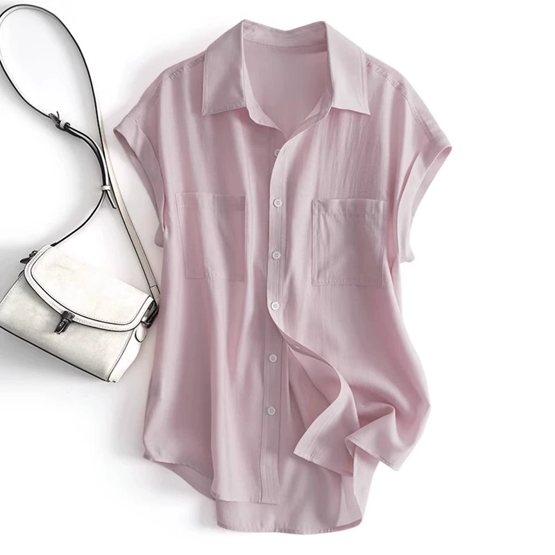 Thin Tencel Chiffon Shirt Women’s Summer Loose Slim Design Niche Feifei Sleeve Top Draped Short Sleeve Shirt