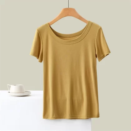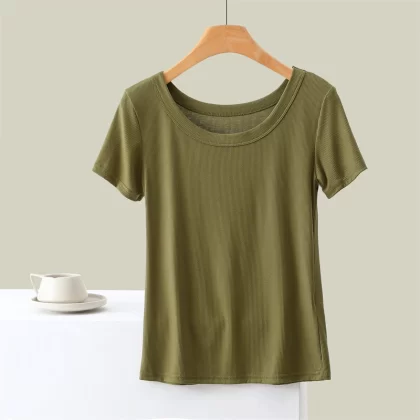 | nameOriginal | Thin threaded modal round neck short-sleeved T-shirt for women slimming half-sleeved top bottoming shirt versatile and simple |