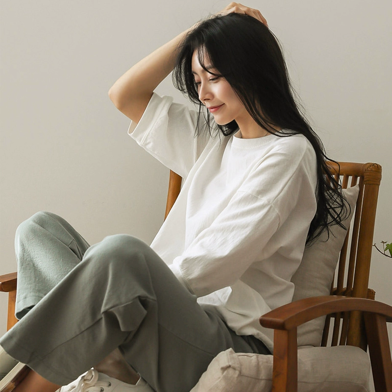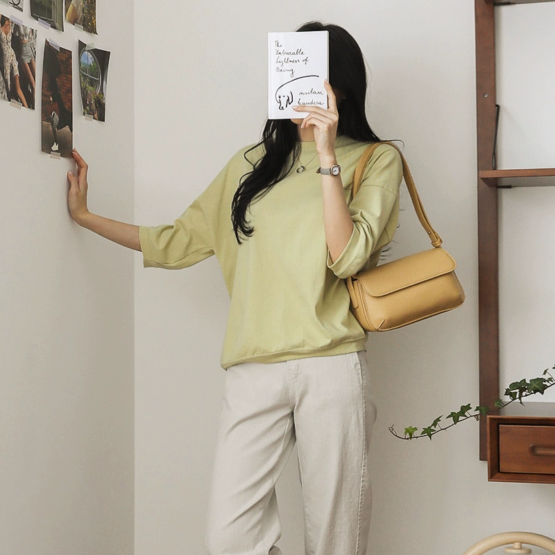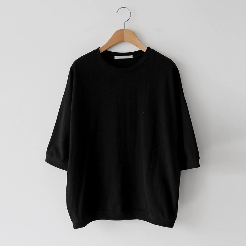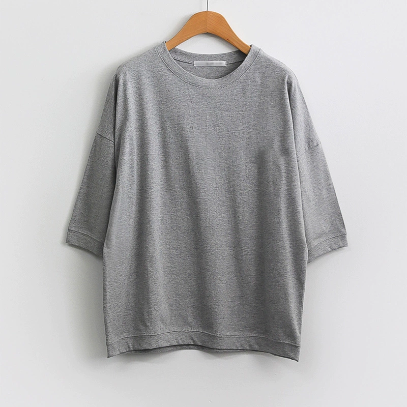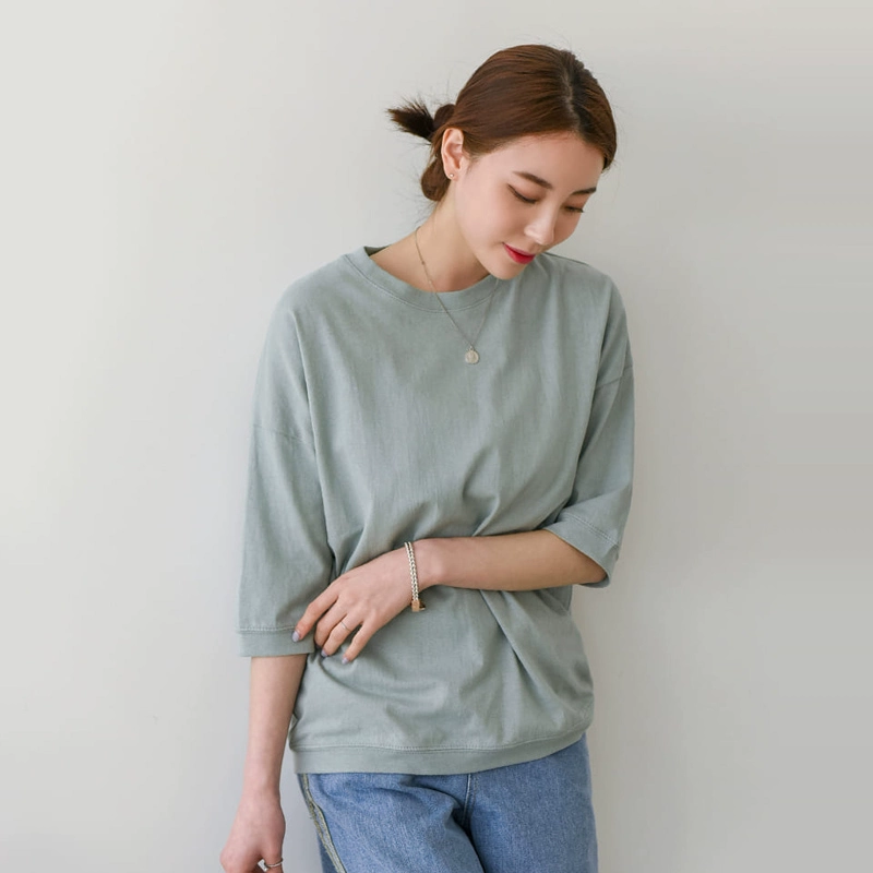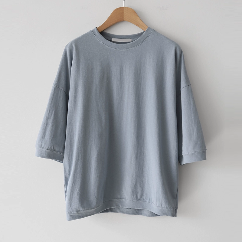 Thin three-quarter sleeve solid color loose round neck top t-shirt