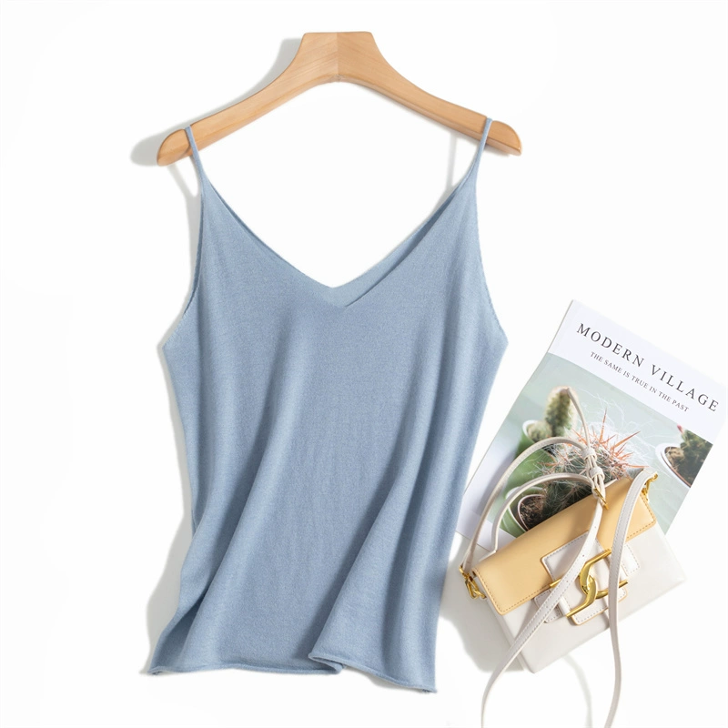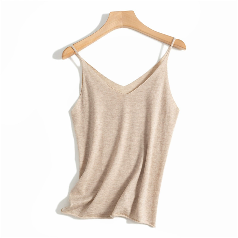 Thin V-neck bottoming shirt with slim fit and fine wool