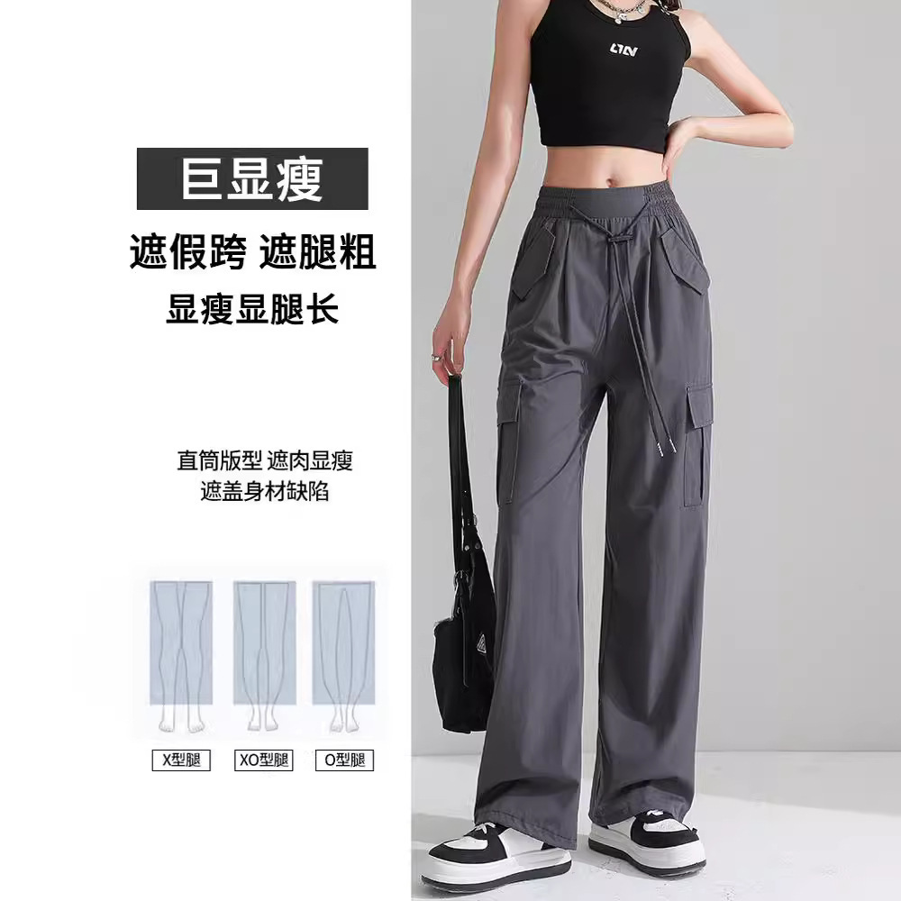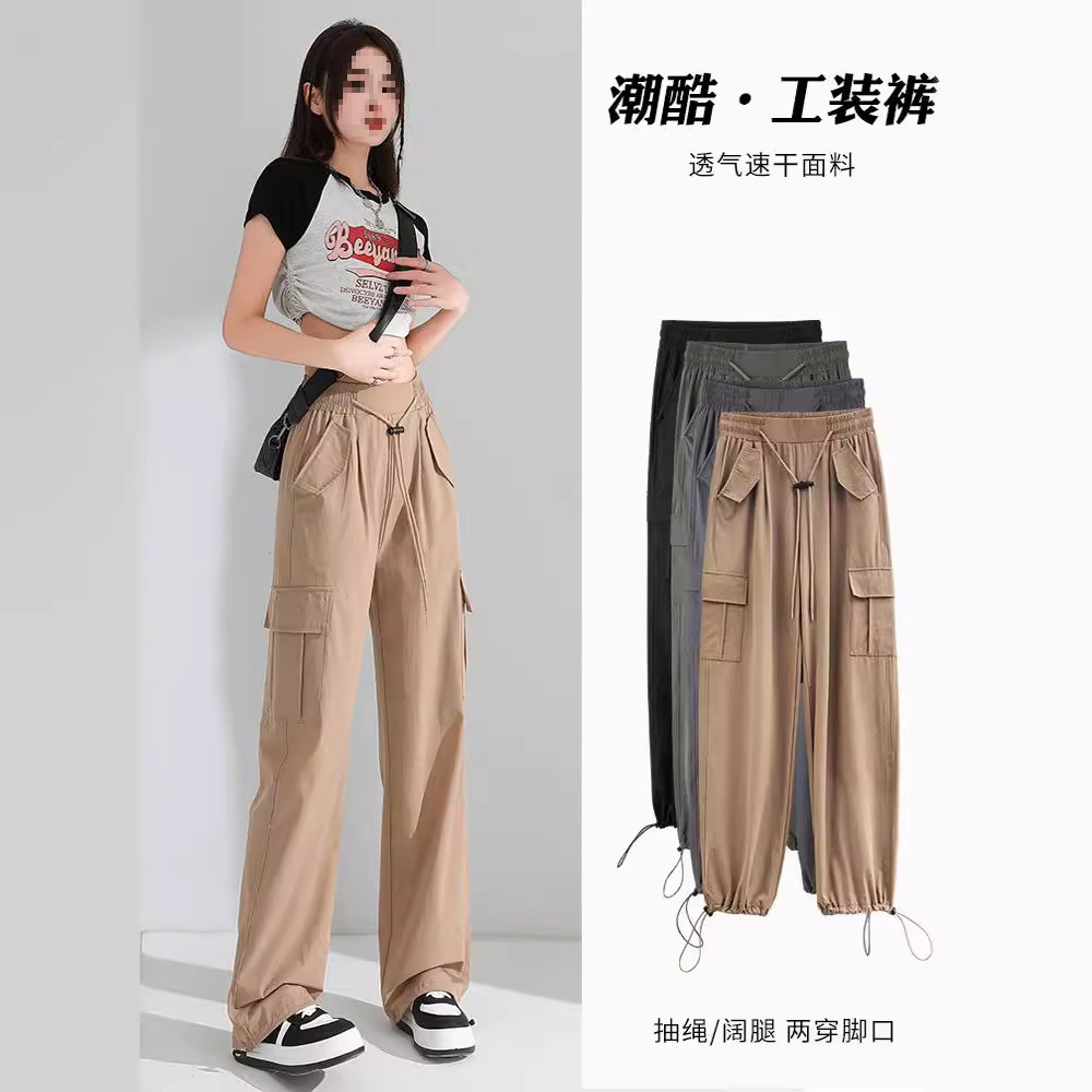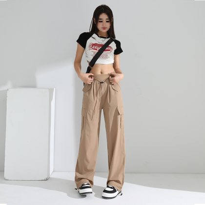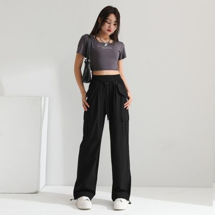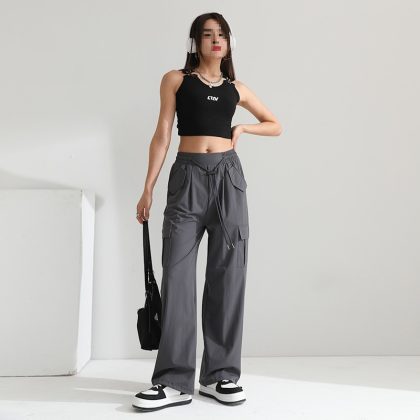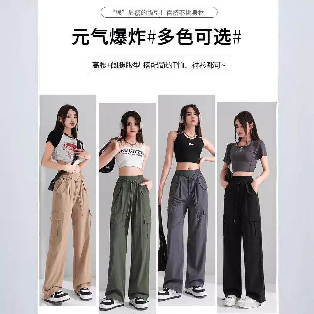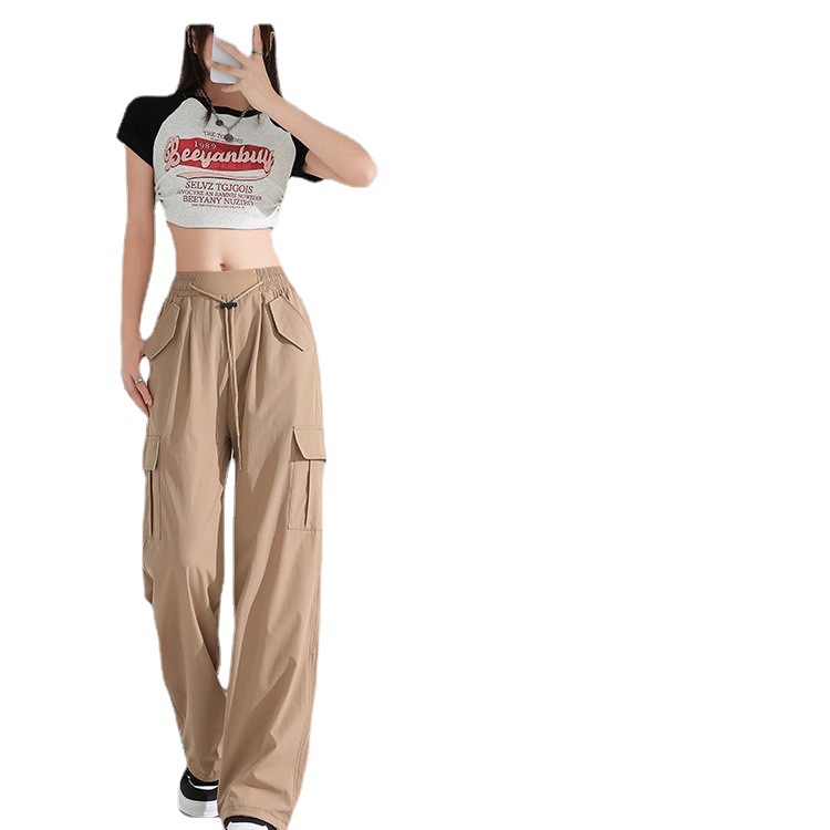 | nameOriginal | Thin Vintage Caution Pants High Waist Women's Slim-looking Sag Wide Leg Casual American Style Sports Drawstring Pants |