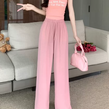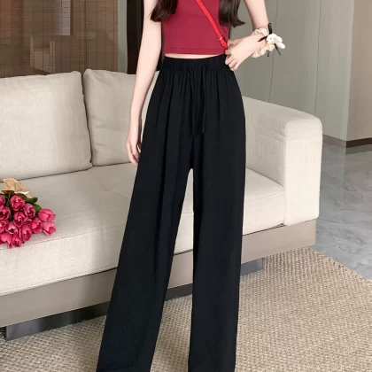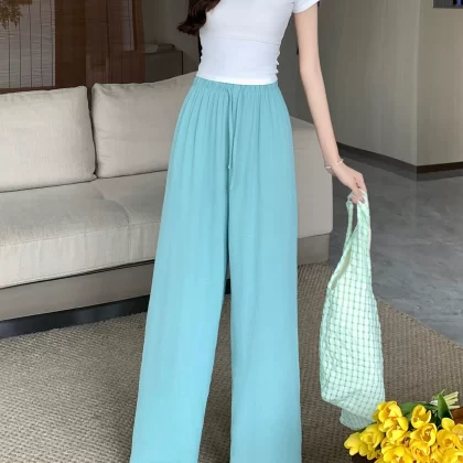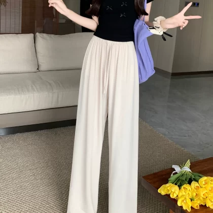 Thin walking drawstring elastic waist floor-length casual pants