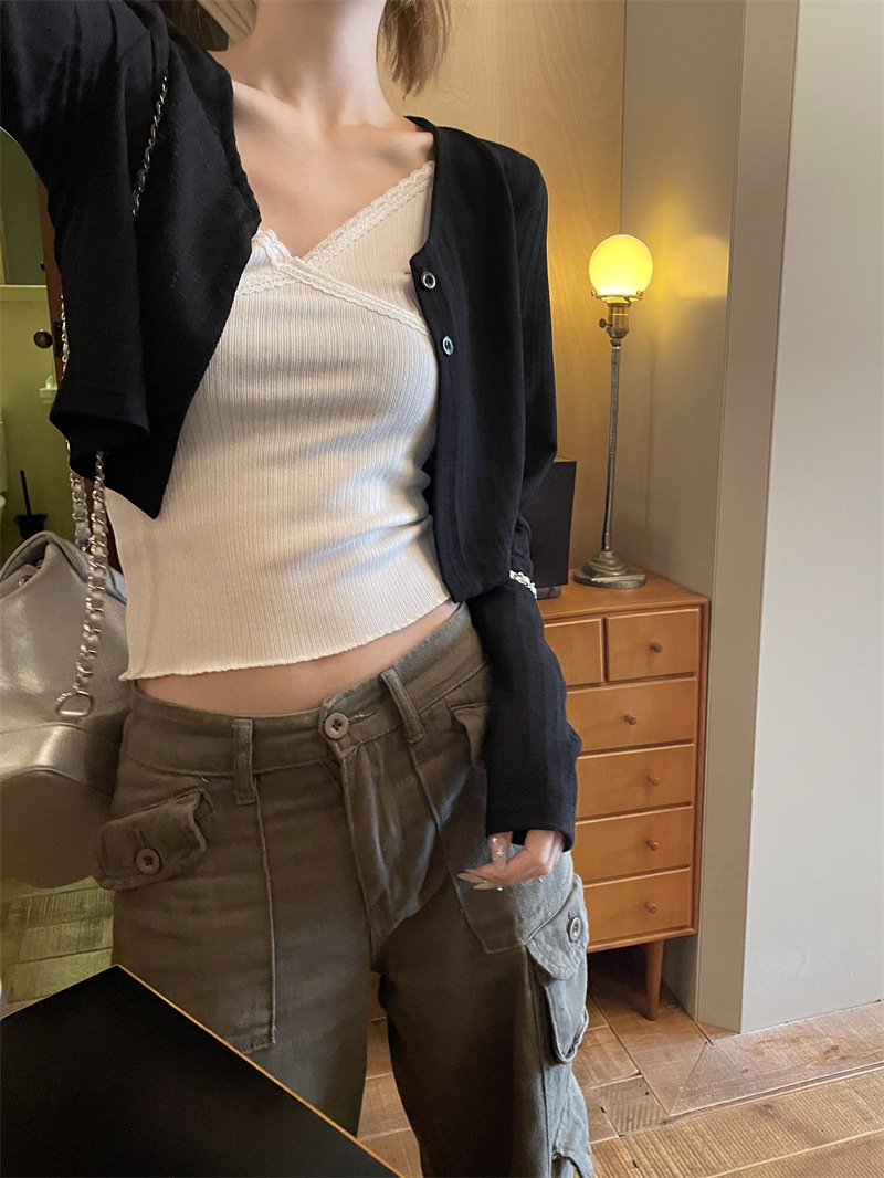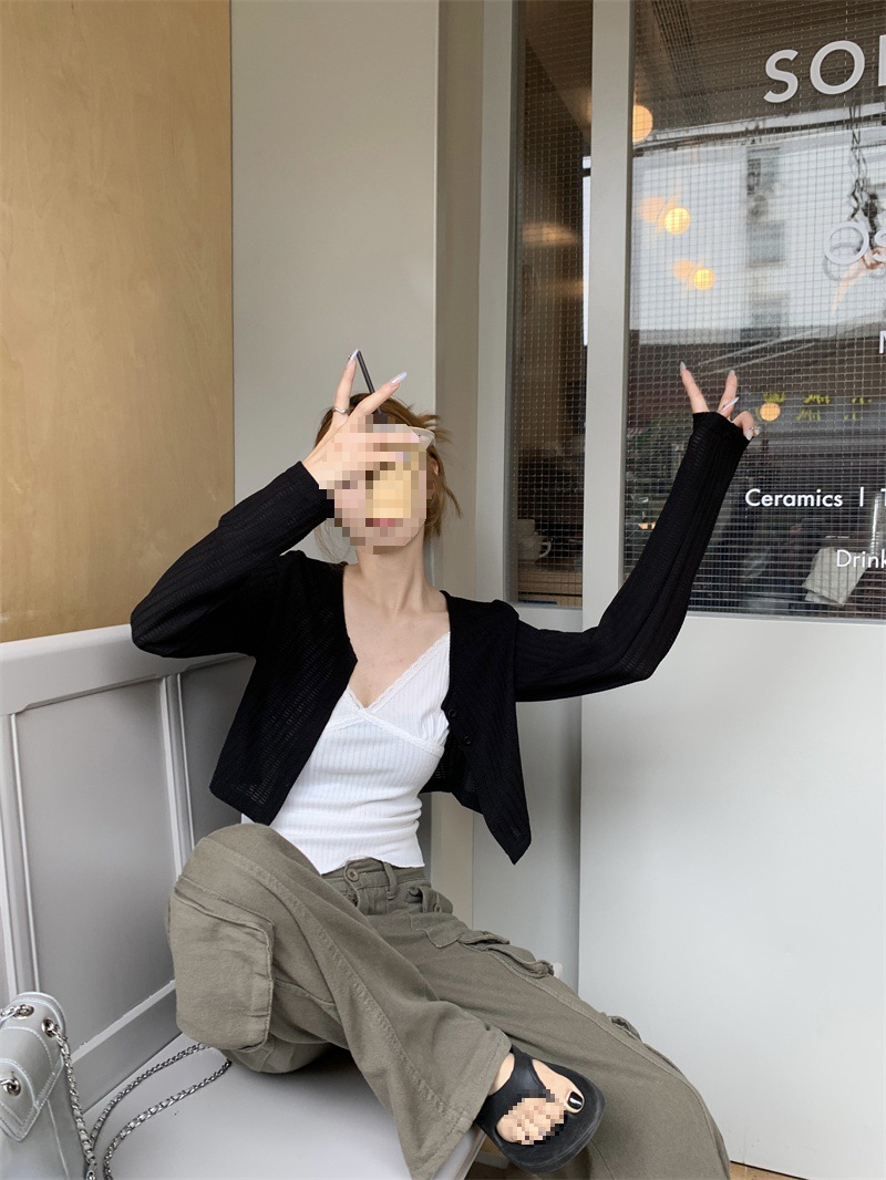 | nameOriginal | Thin White Long-sleeved Sunscreen Knitted Cardigan Jacket Women's Summer Loose Slim-fit Short Black Trendy Outer Top |