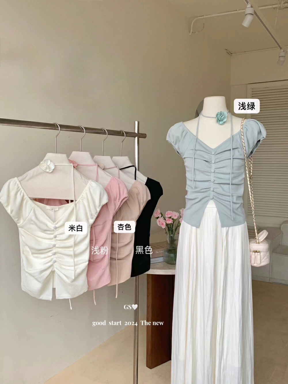 | nameOriginal | Thirteen-line short-sleeved summer design with slim-fitting flowers |
