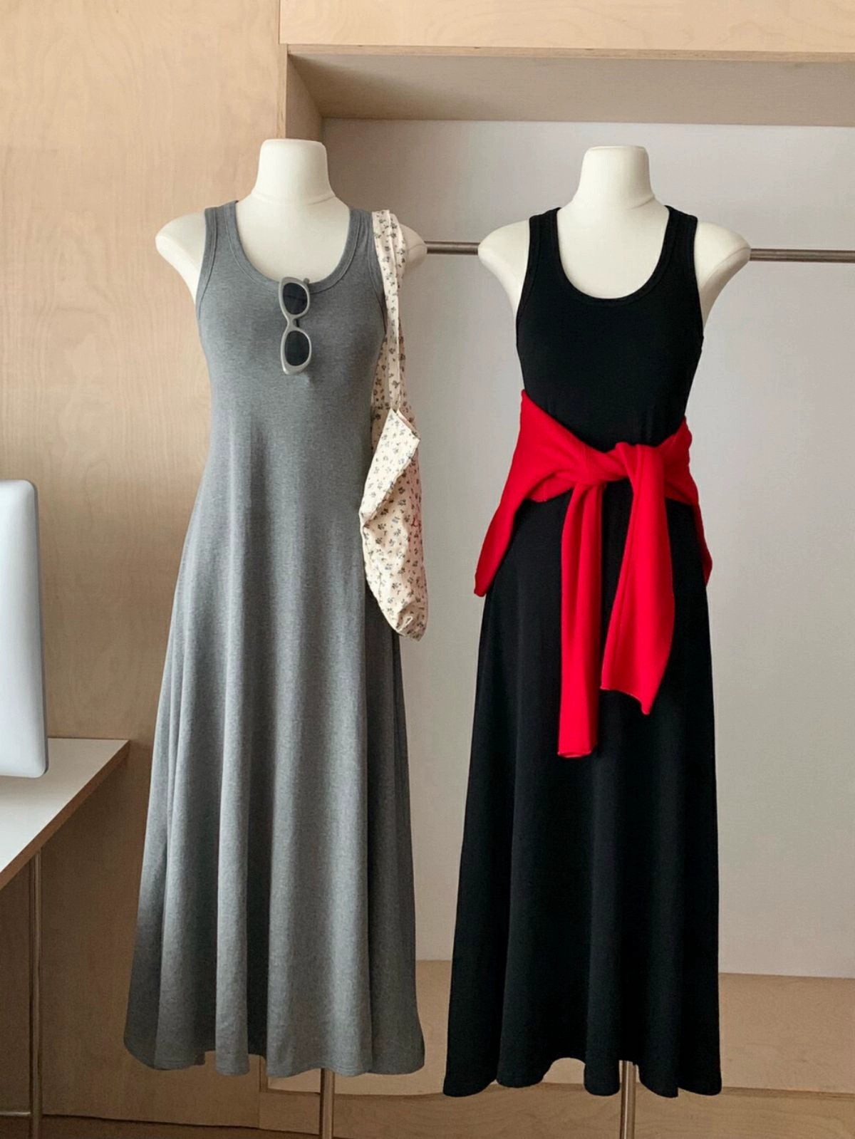 Thirteen-line slim-fit suspender dress U-neck summer dress