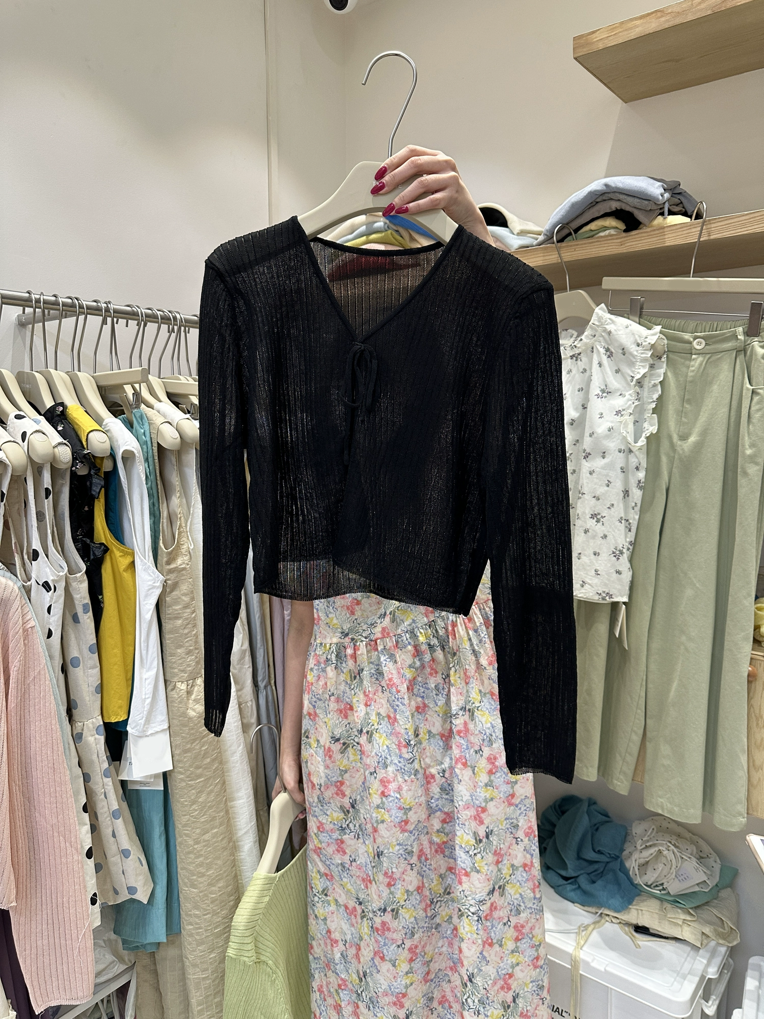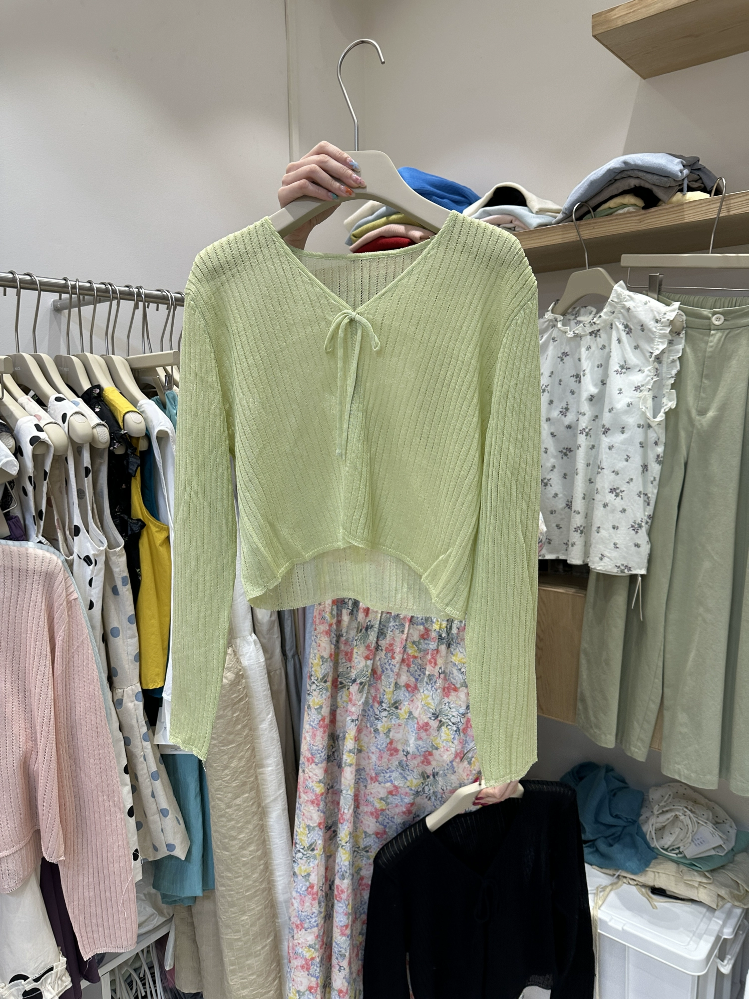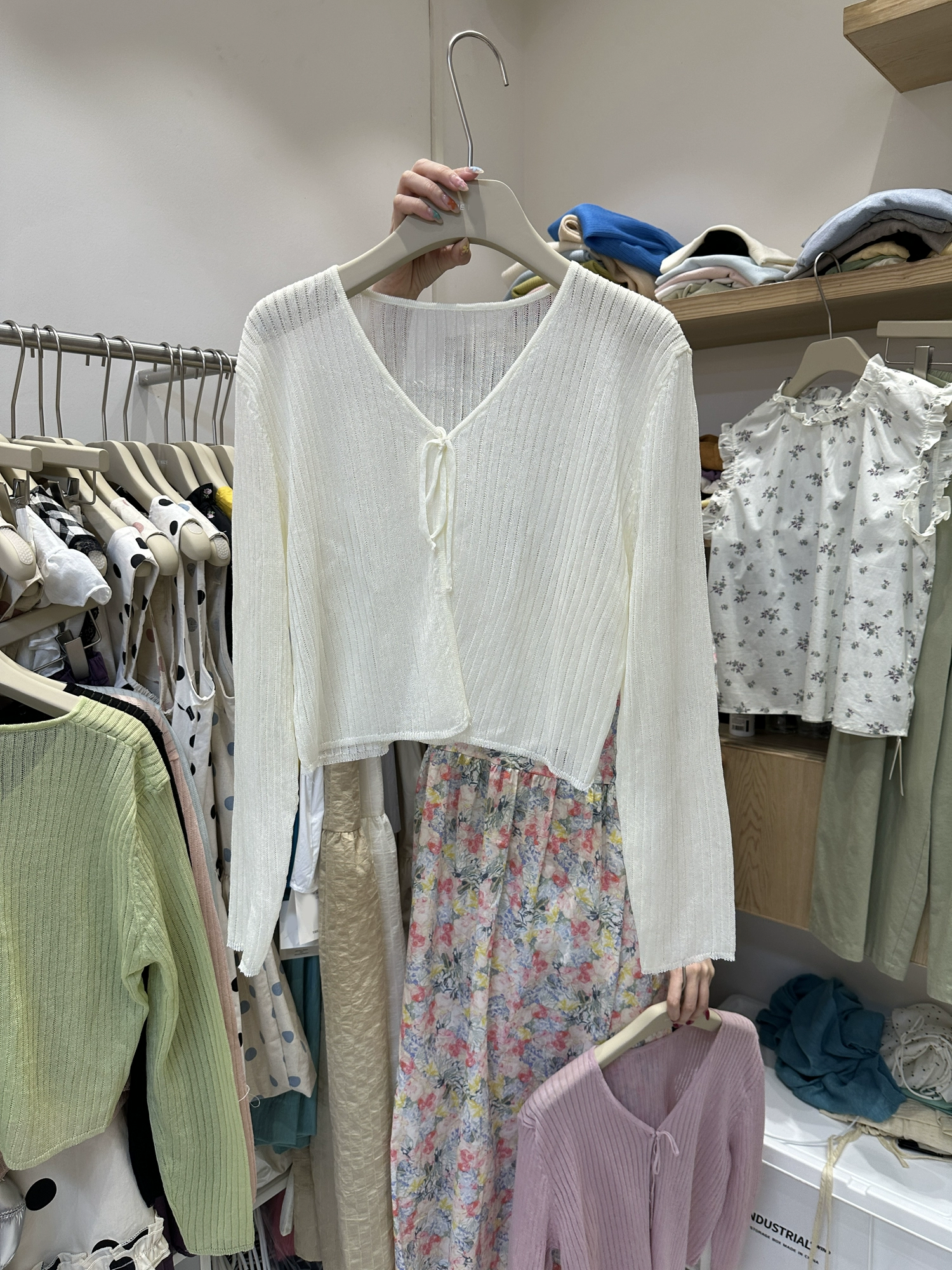 Thirteen lines 2024 summer v-neck knitted cardigan