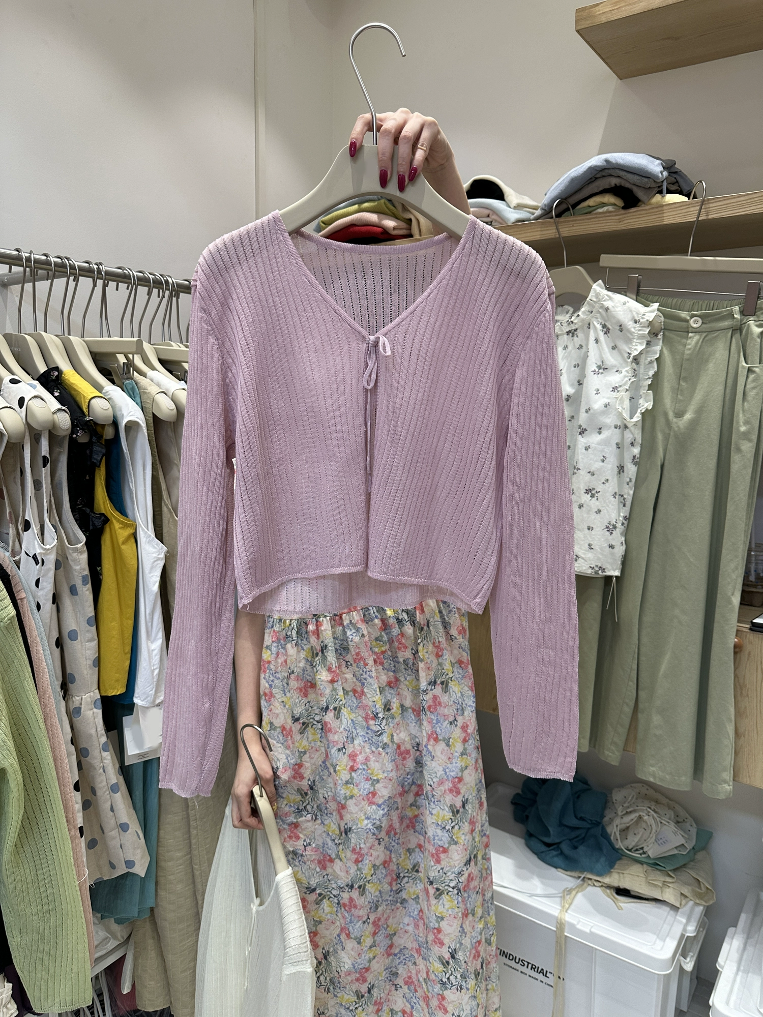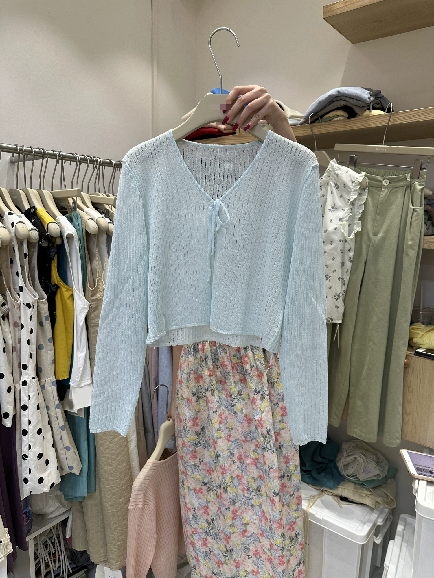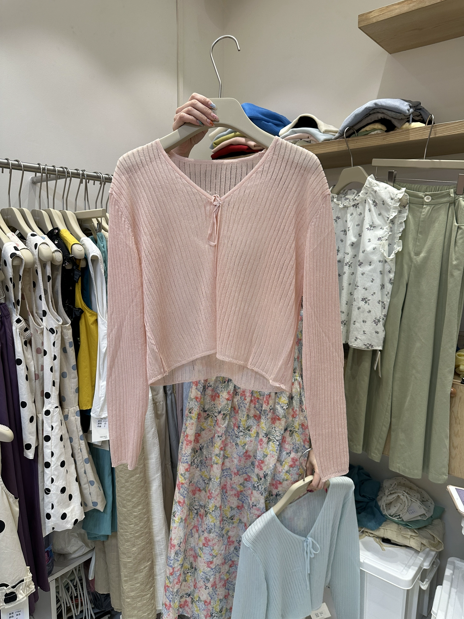Thirteen lines 2024 summer v-neck knitted cardigan