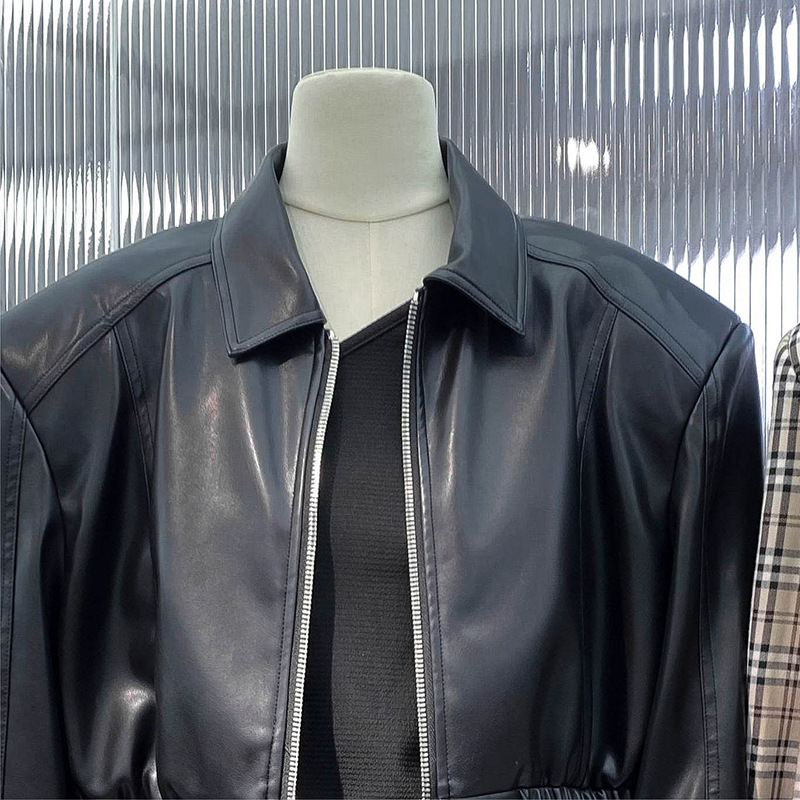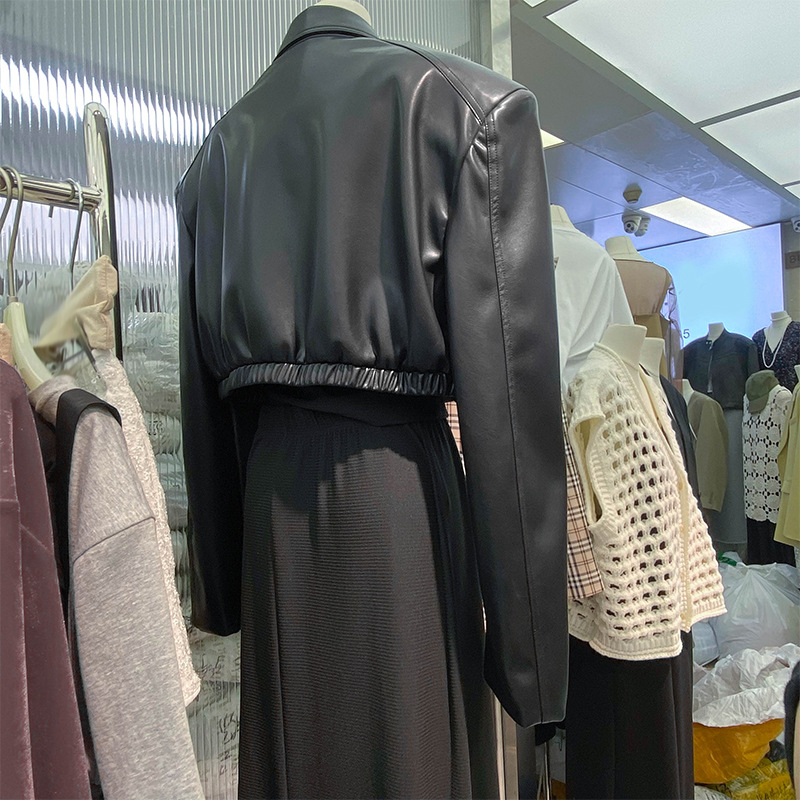 | nameOriginal | Thirteen lines autumn vintage lapel small high waist short black leather biker jacket jacket women |