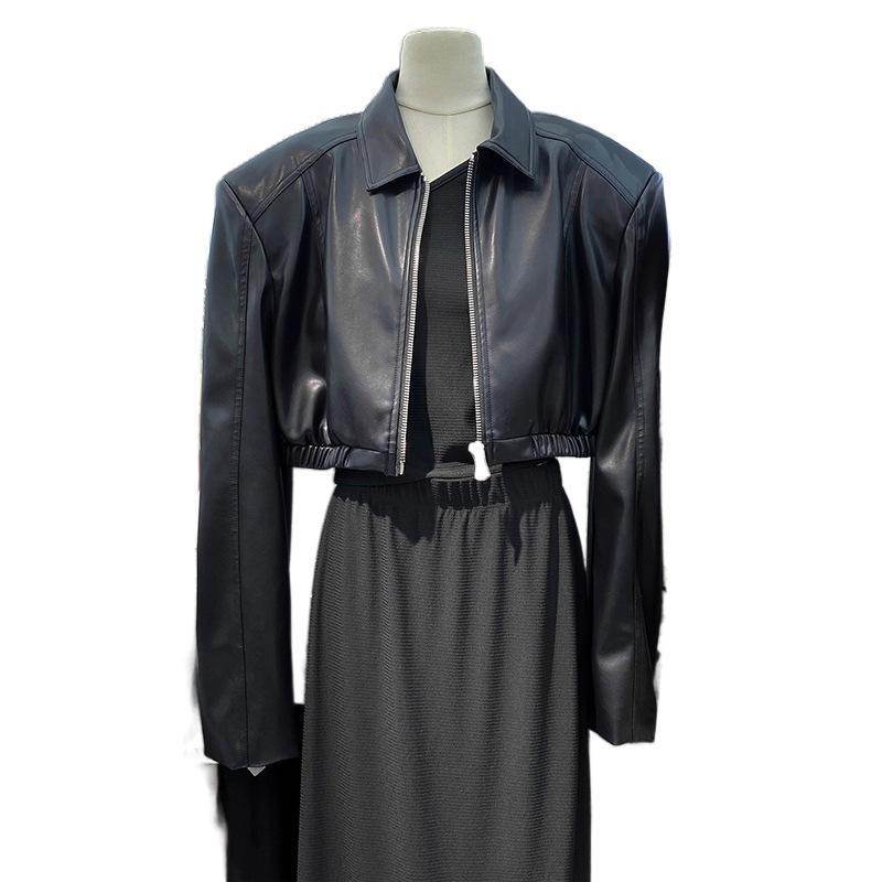 | nameOriginal | Thirteen lines autumn vintage lapel small high waist short black PU leather biker jacket jacket women |