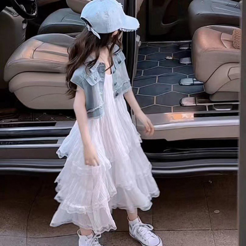 | nameOriginal | Thirteen Lines Girls' suit Slip Skirt Summer New Korean Style Mid-Big Children's Western Style Girls' Denim Top Two-Piece Set |