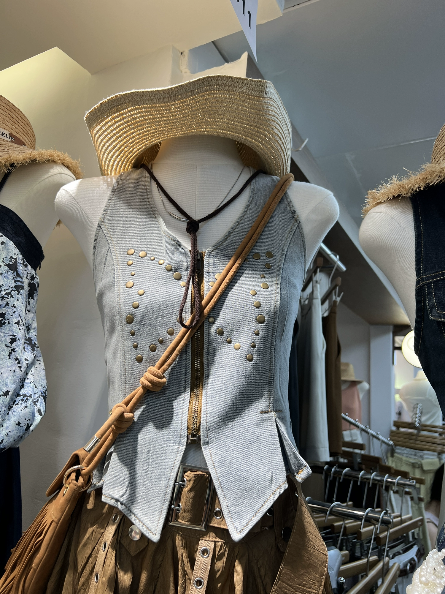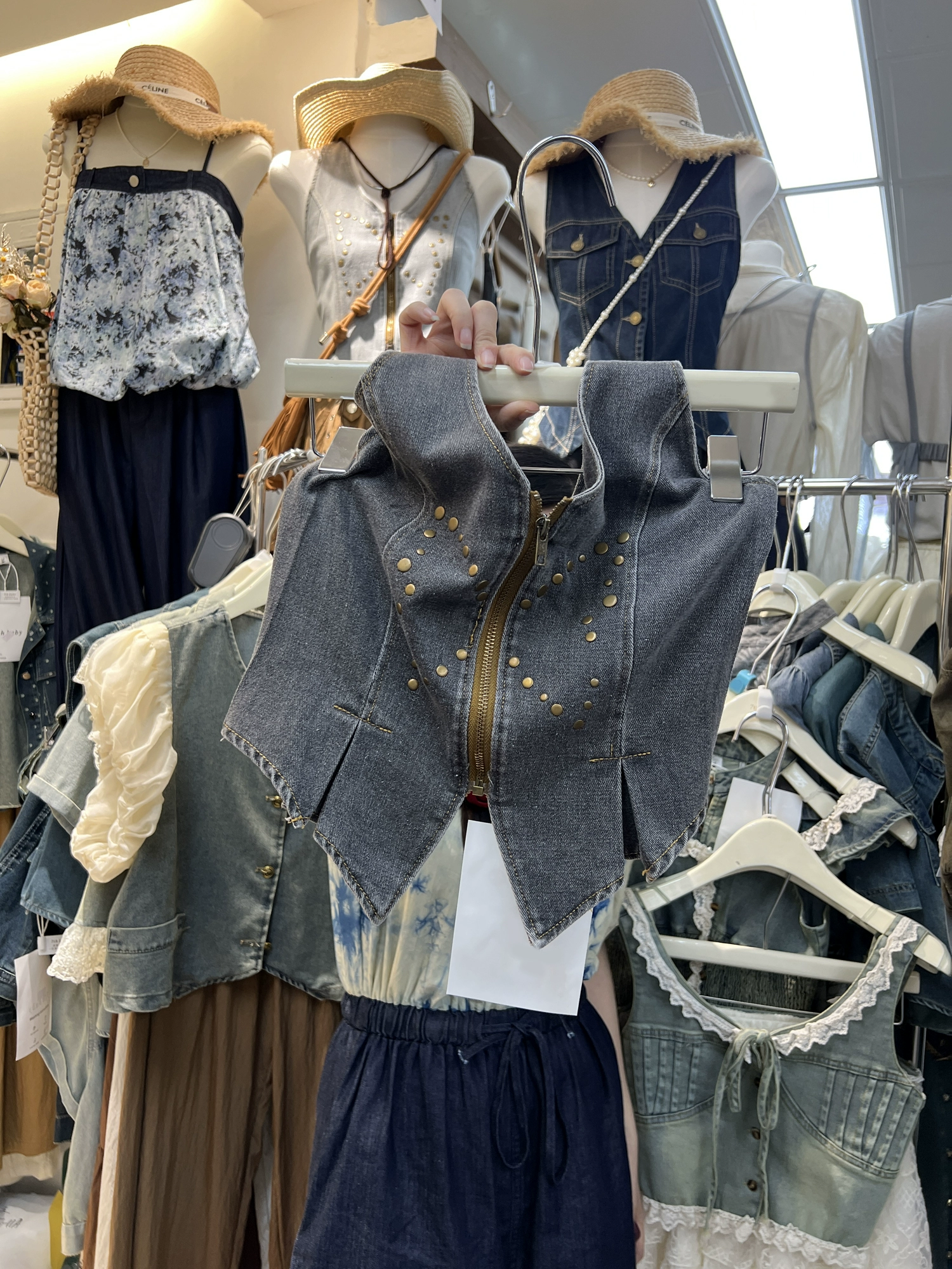| nameOriginal | Thirteen Lines Heavy Industry Rivet Slim Fit Denim Vest Halter Neck |