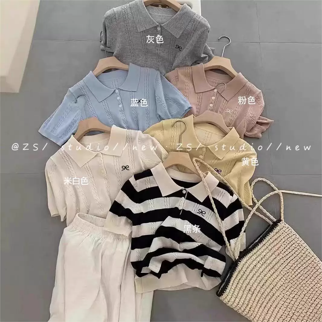 | nameOriginal | Thirteen lines of embroidered knitted POLO shirt with short bow |