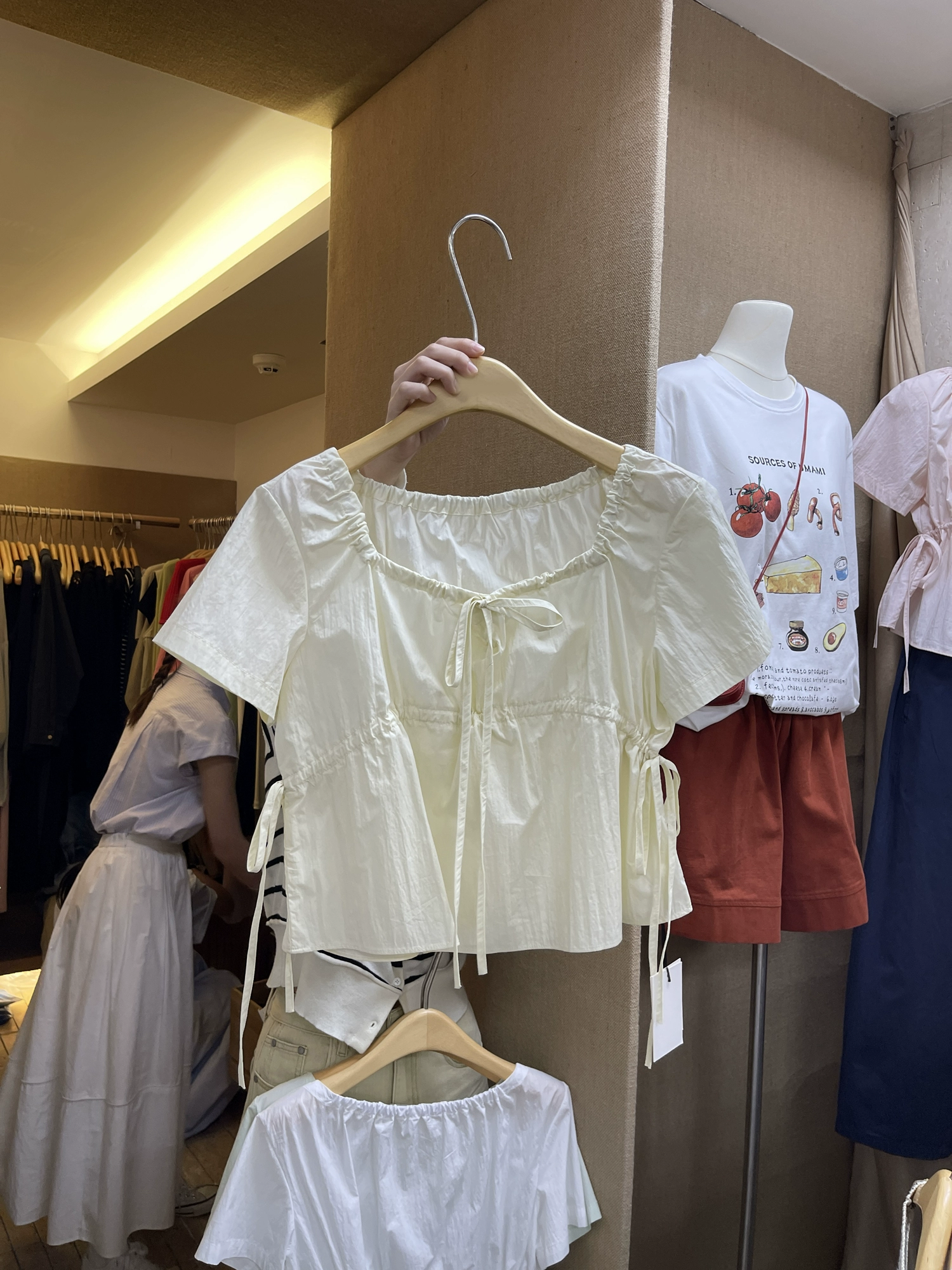 Thirteen lines of fashionable lace-up, gentle, solid color, age-reducing short sleeves