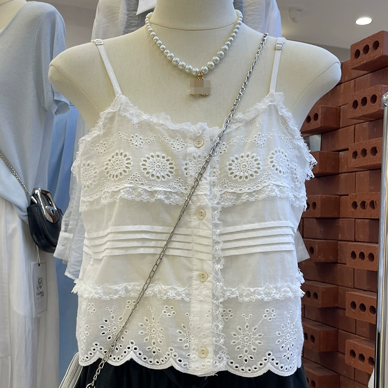| nameOriginal | Thirteen lines of niche white hollow sleeveless camisole |