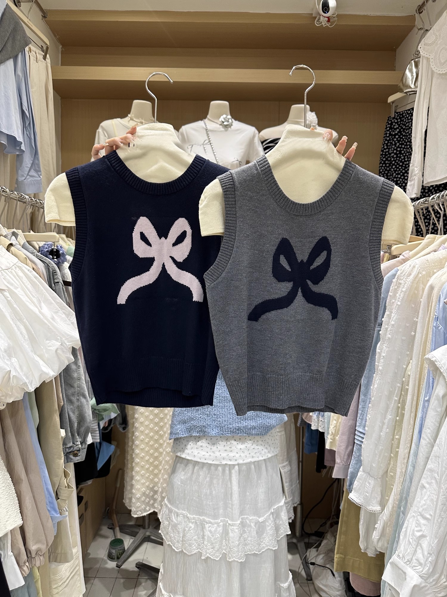 Thirteen lines of slim-fitting pullover knitted vest with bow