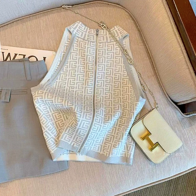 Thirteen lines of small fragrant style zipper sleeveless top vest