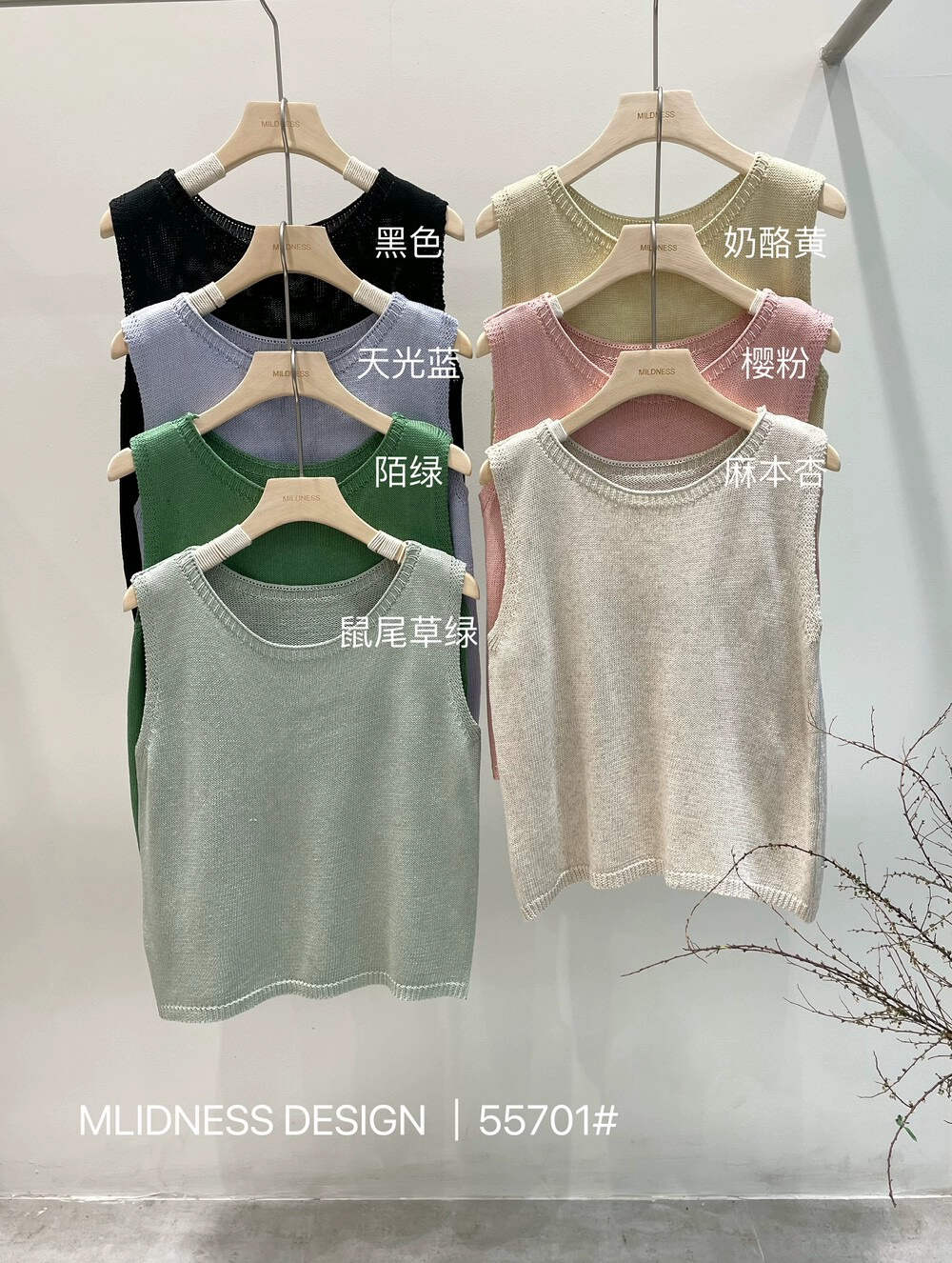 Thirteen lines of solid color thin loose sleeveless knitted vest