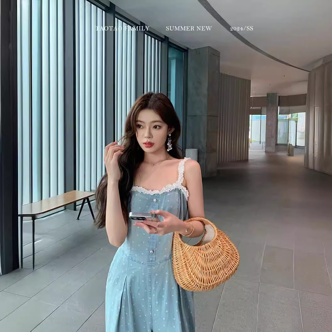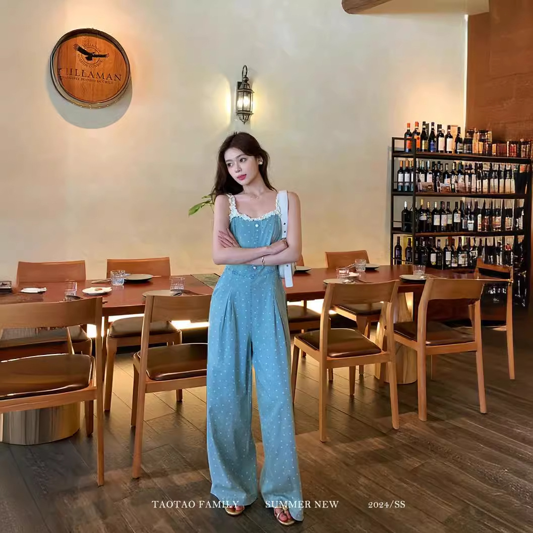 | nameOriginal | Thirteen lines of summer new (TAOTAOFAMILY) casual wave point lace stitching Denim suspenders jumpsuit 7077 |