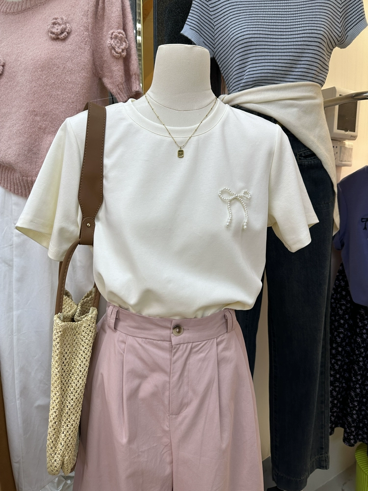 | nameOriginal | Thirteen lines of trendy loose pearl short sleeve bow |