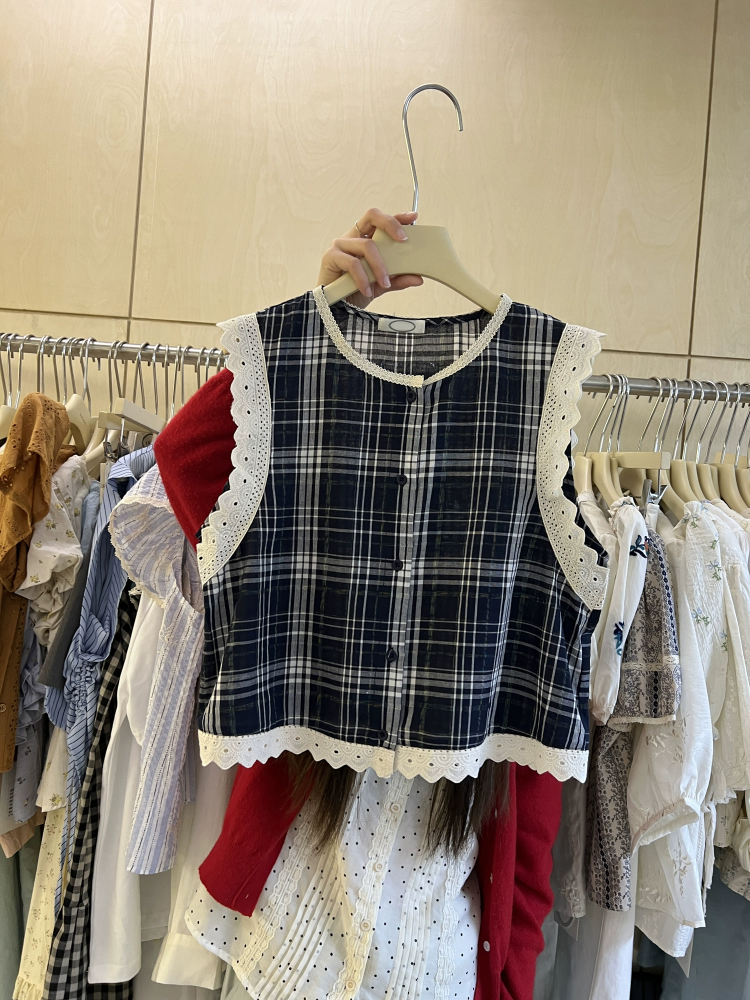 Thirteen lines of vintage sleeveless single-breasted cotton and linen shirt