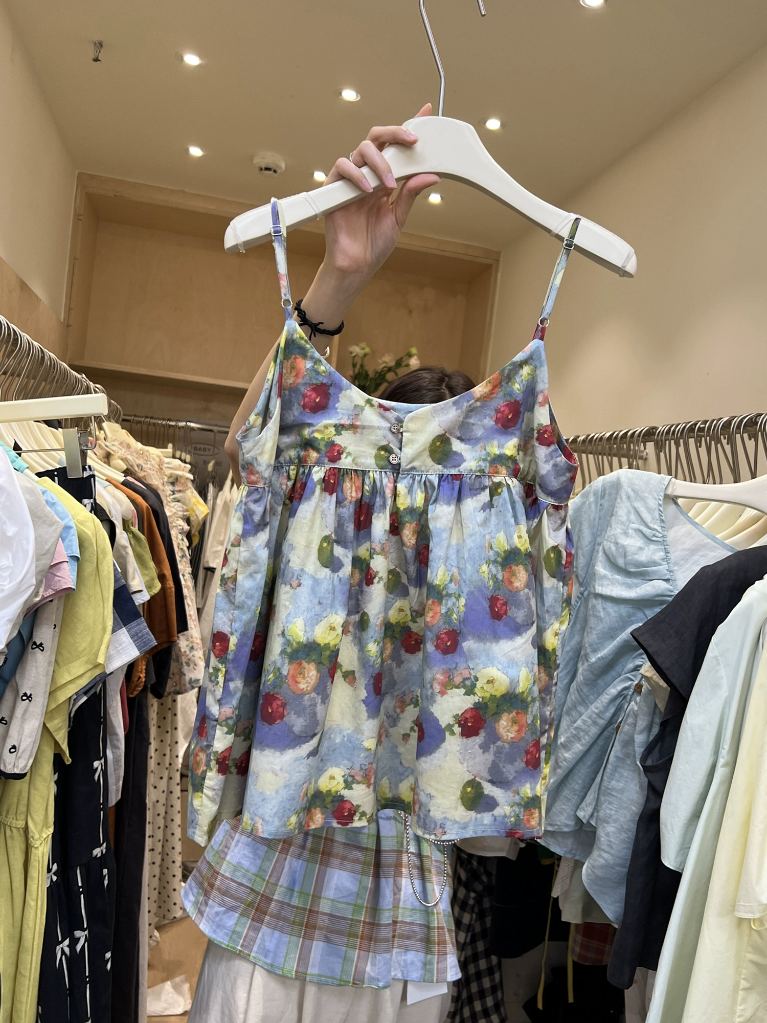 Thirteen lines of white retro floral camisole
