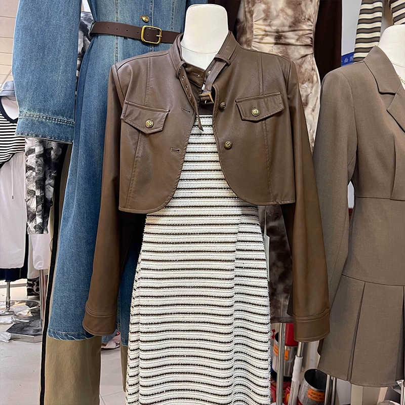 Thirteen Lines Stand Collar Functional Style Hot Girl Short Jacket Leather Jacket
