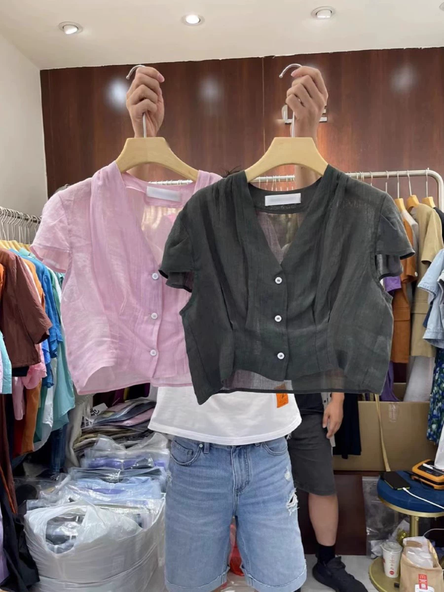 | nameOriginal | Thirteen Lines Summer Clothes New Style Chic Loose Design V-neck Pleated Short Small Flying Sleeves Shirt Women Ins Trend |
