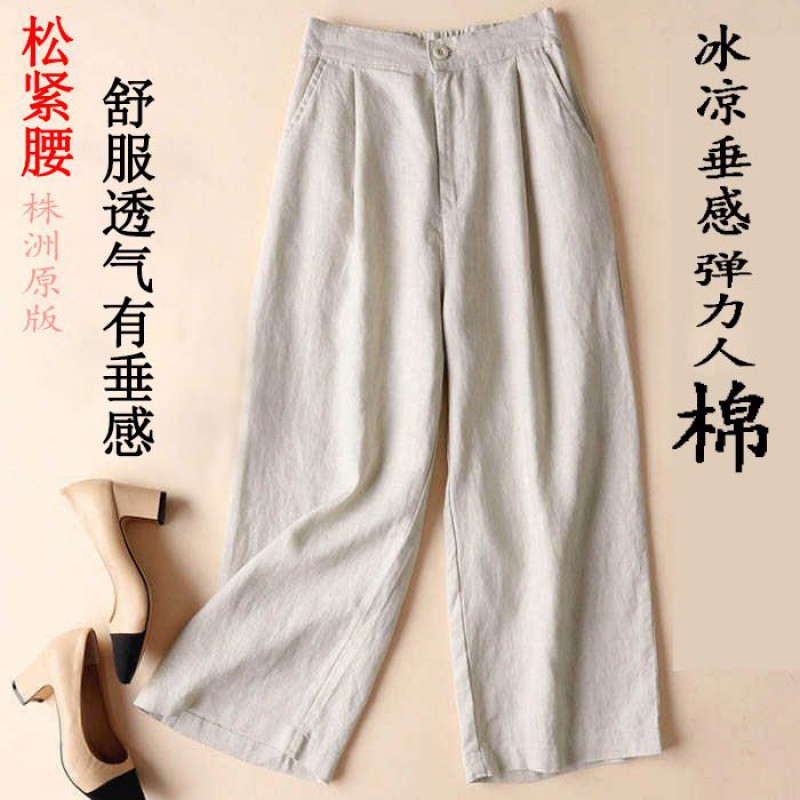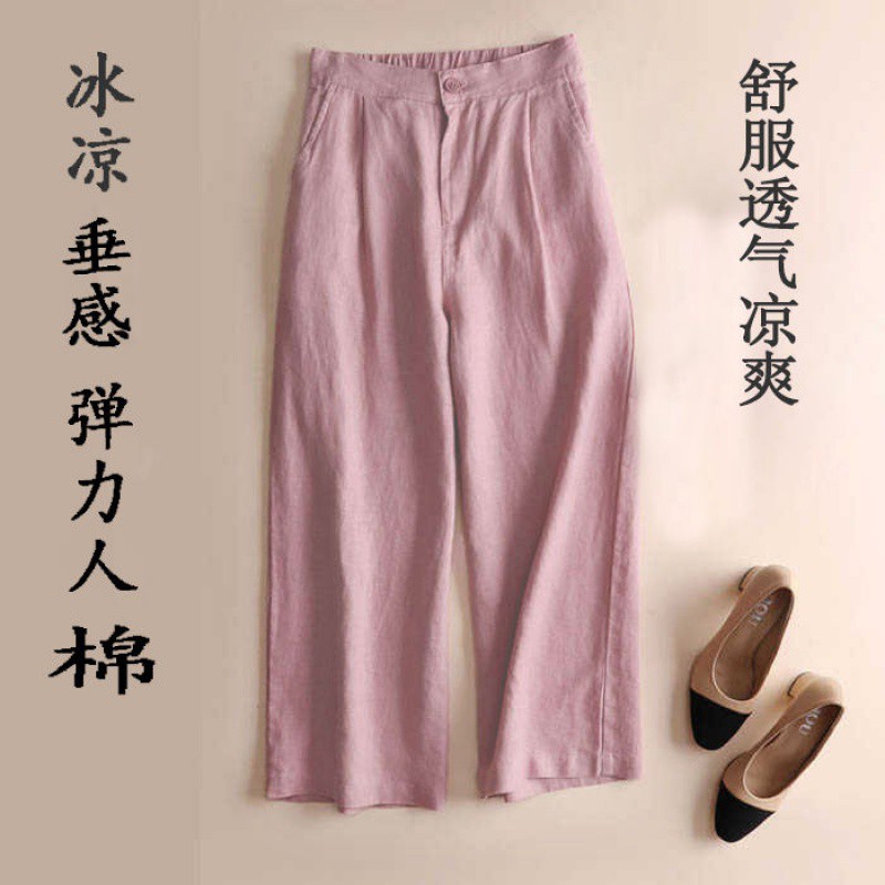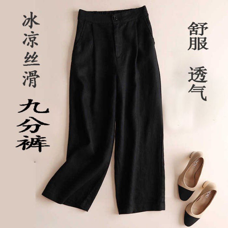 | nameOriginal | Thirteen Lines Summer Ice Silk Cotton Stretch Cropped Pants Elastic Waist Wide Leg Pants Women's High Waist Casual Women's Pants Loose Breathable |
