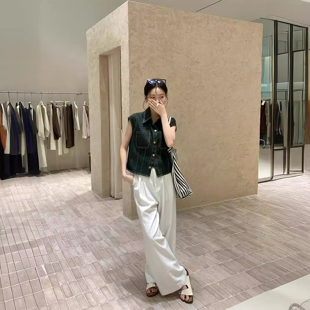 | nameOriginal | Thirteen lines sunset women's 2024 summer new simple all-match lapel small fly sleeve Denim top women's 9371 |