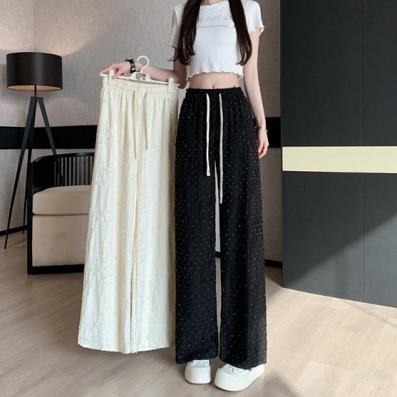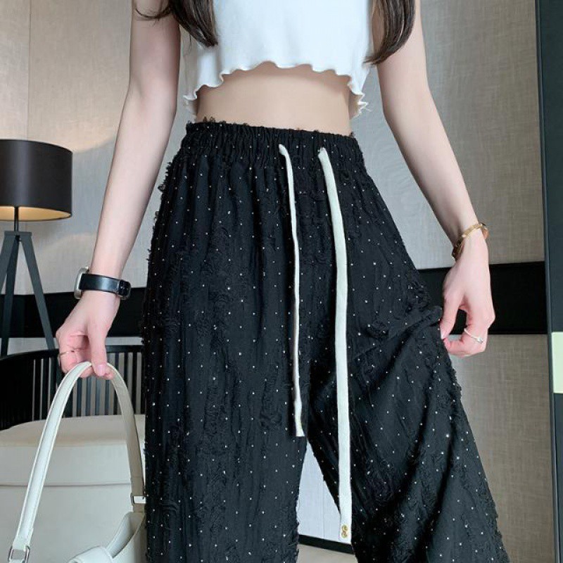 | nameOriginal | Thirteen Rhinestone Casual Swede Pants Women's Spring and Summer Niche High Waist Dosing Reticulated Straight Pants Loose Slim Wide Leg Pants |