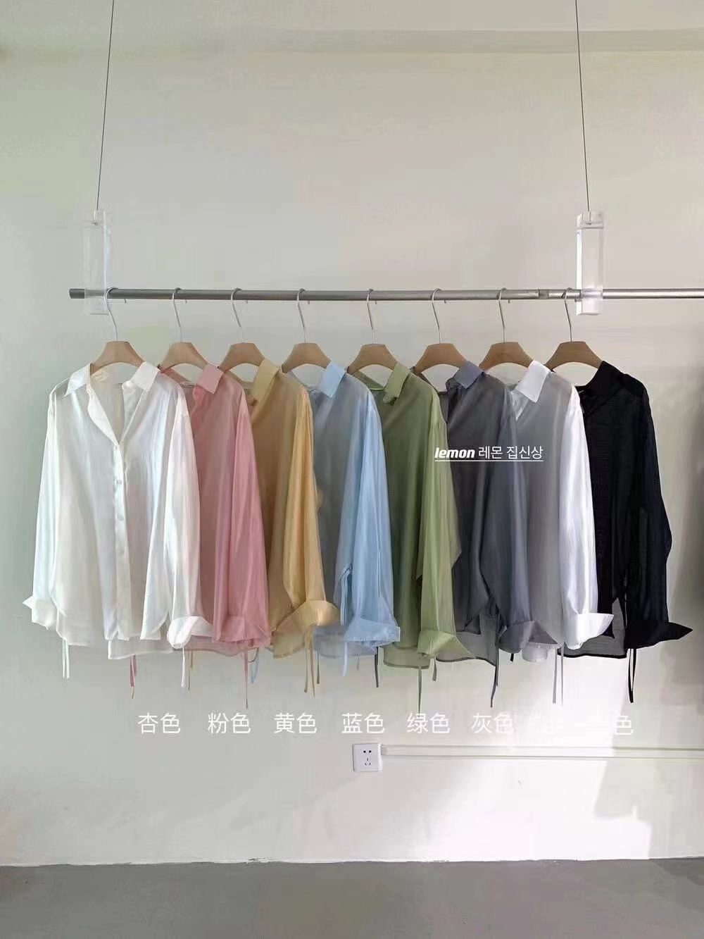 | nameOriginal | Thirteen-row Polo collar lace-up loose long-sleeved shirt |