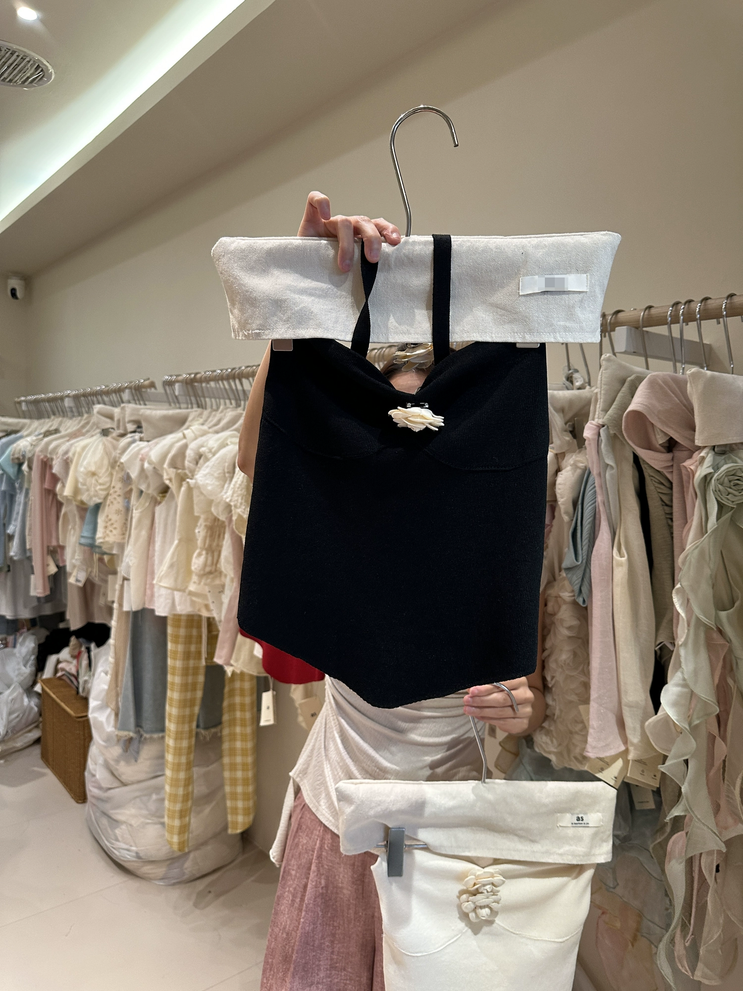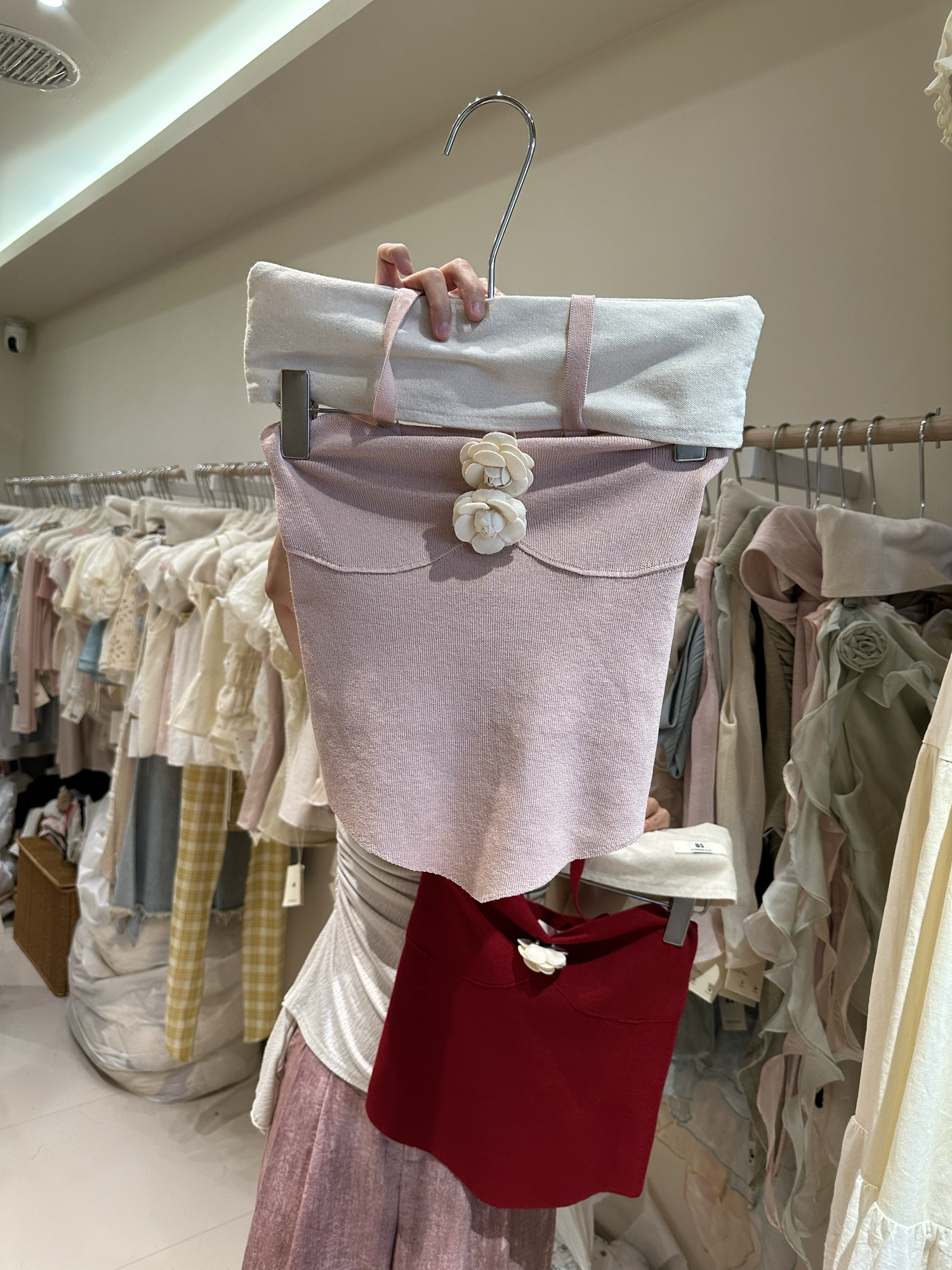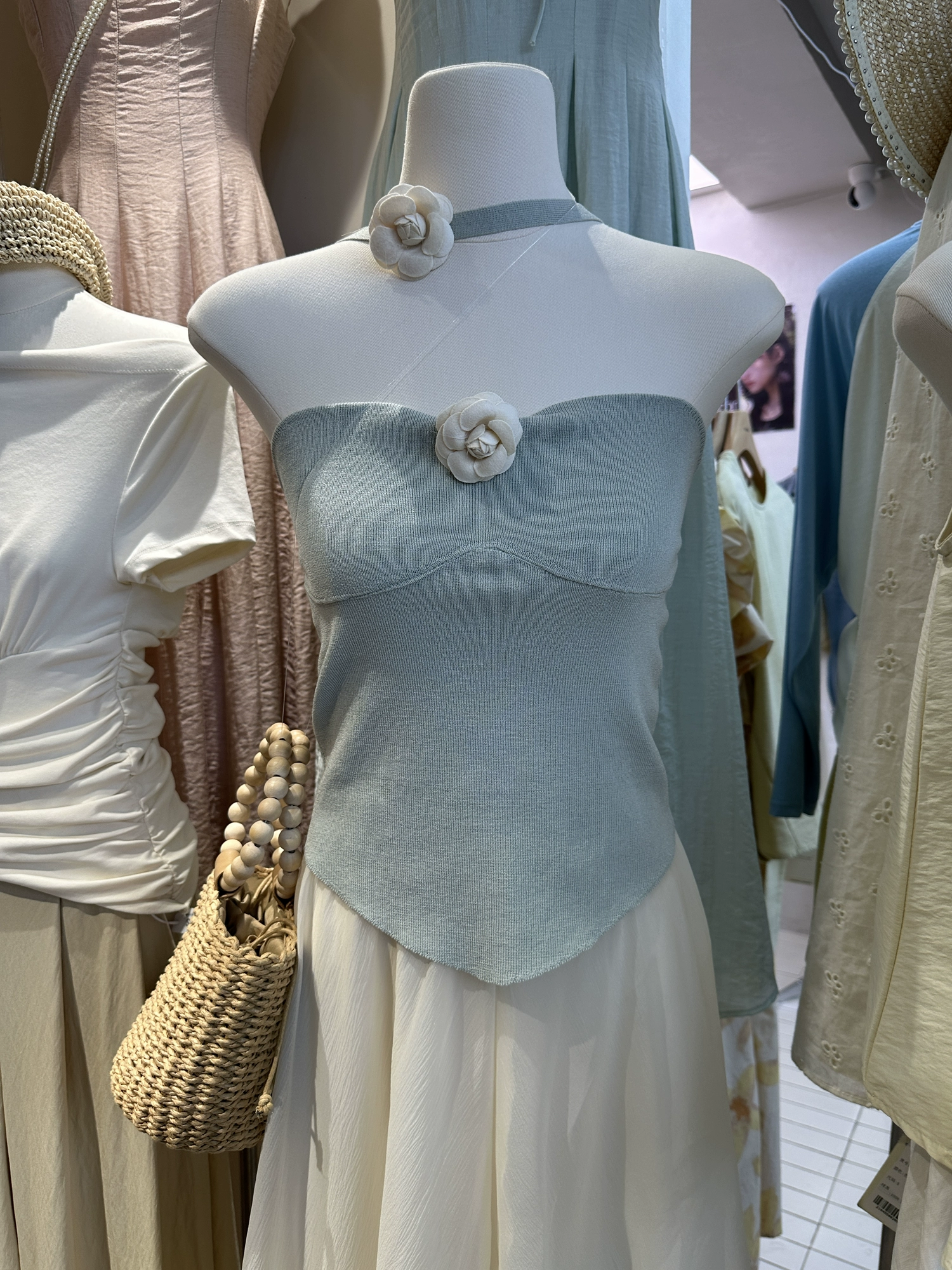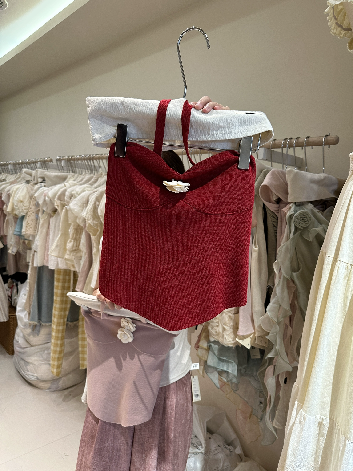 Thirteen rows of rose flowers short knitted tube top halter neck