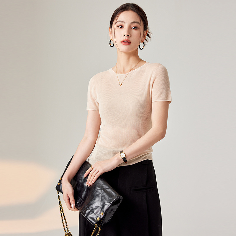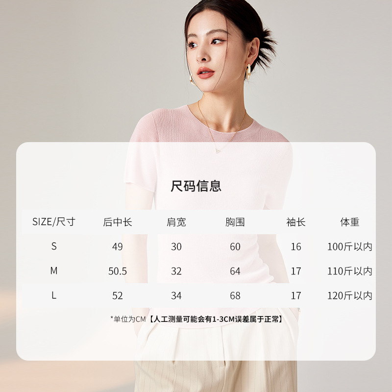 | nameOriginal | [This beginning] 24 spring and summer stretch slim Lanjing Tencel T-shirt with seamless integrated knitted short sleeve jacket for women |