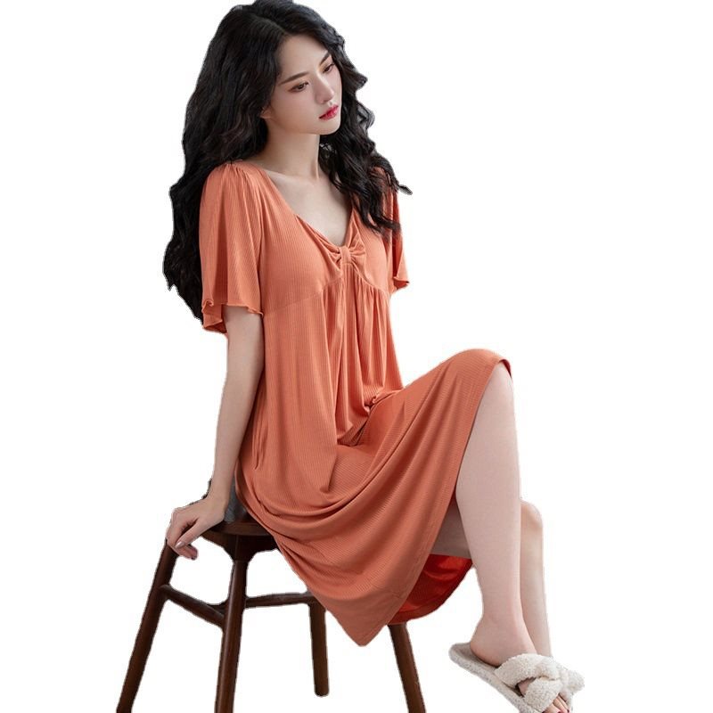 | nameOriginal | This year's high-end fashion ~ clearance foreign trade discount pajamas women's nightgown ice silk pure wind short sleeve thin sexy |