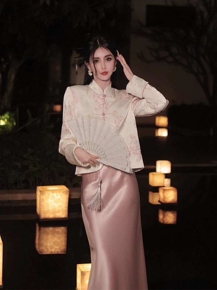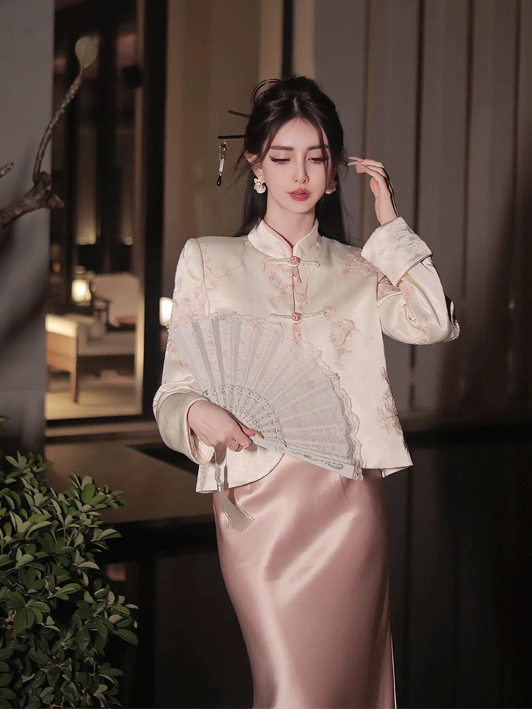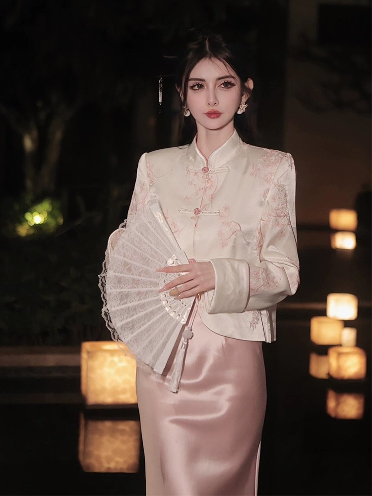 | nameOriginal | This year's popular beautiful dress women's early spring 2024 new Chinese style national style pink buckle coat two-piece |