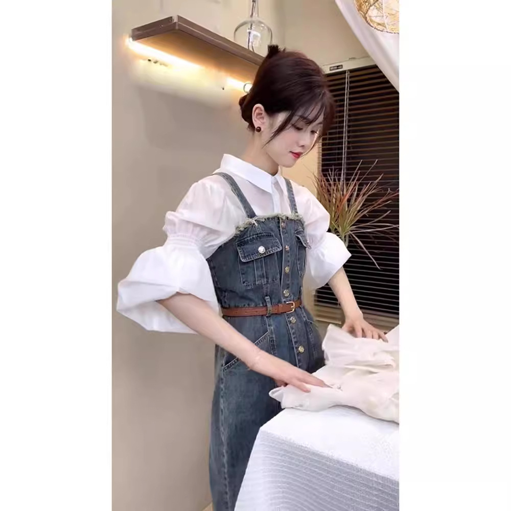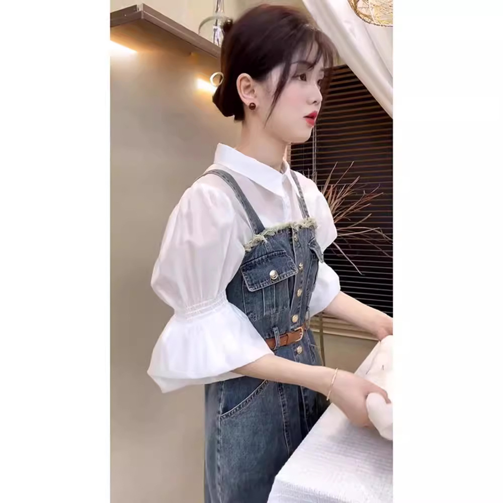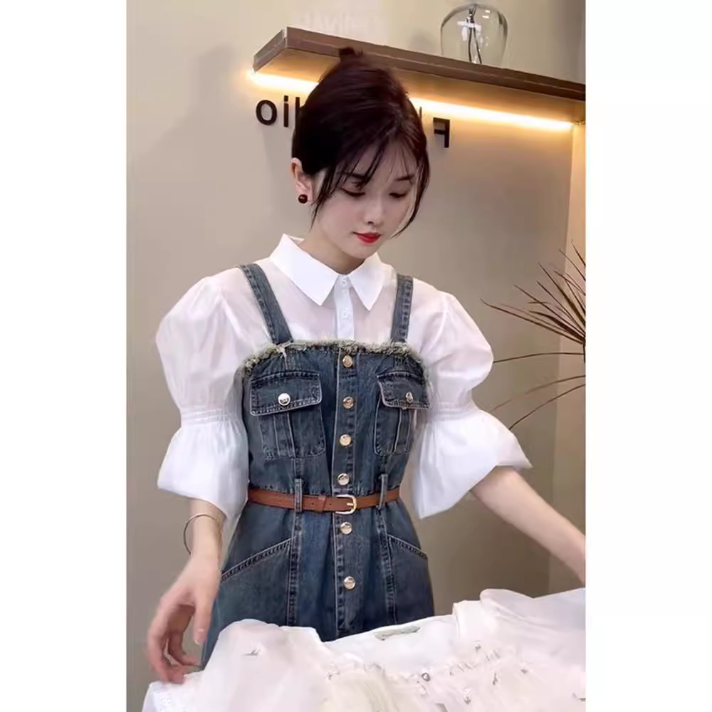| nameOriginal | This year's popular beautiful dress women's summer small style light luxury high-end shirt Denim skirt two-piece |