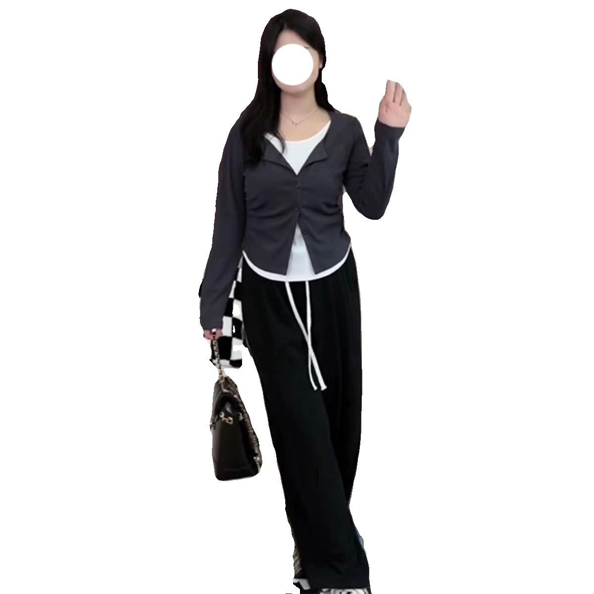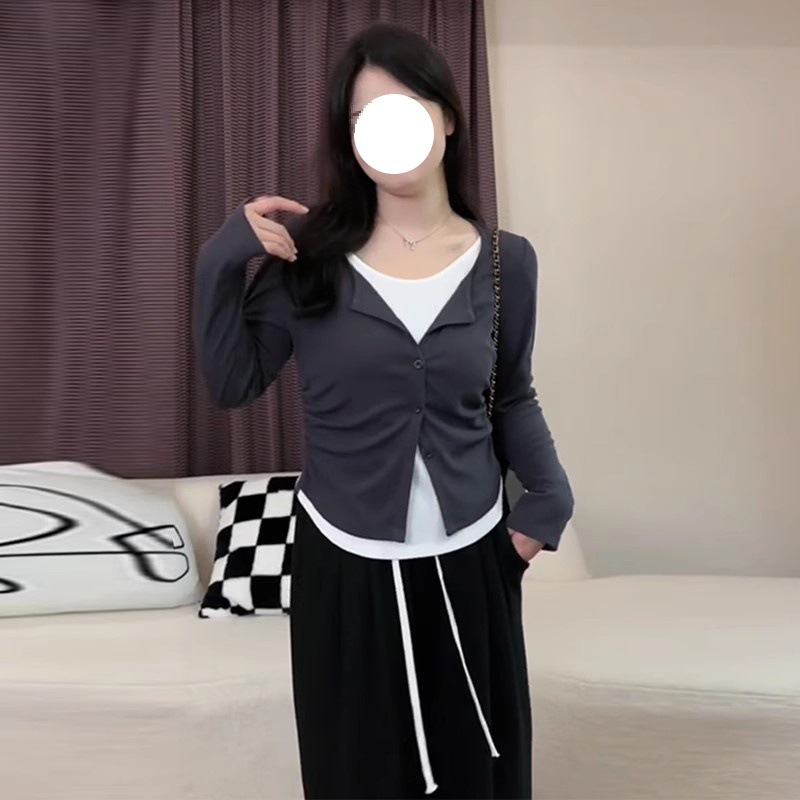 | nameOriginal | This year's popular plus size 2024 cardigan long sleeve T-shirt women's spring chubby girl giant slim fake two-piece high-end top |