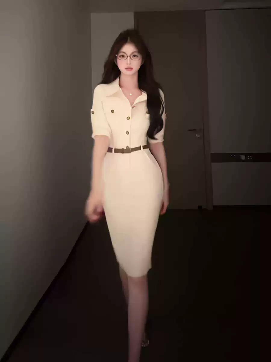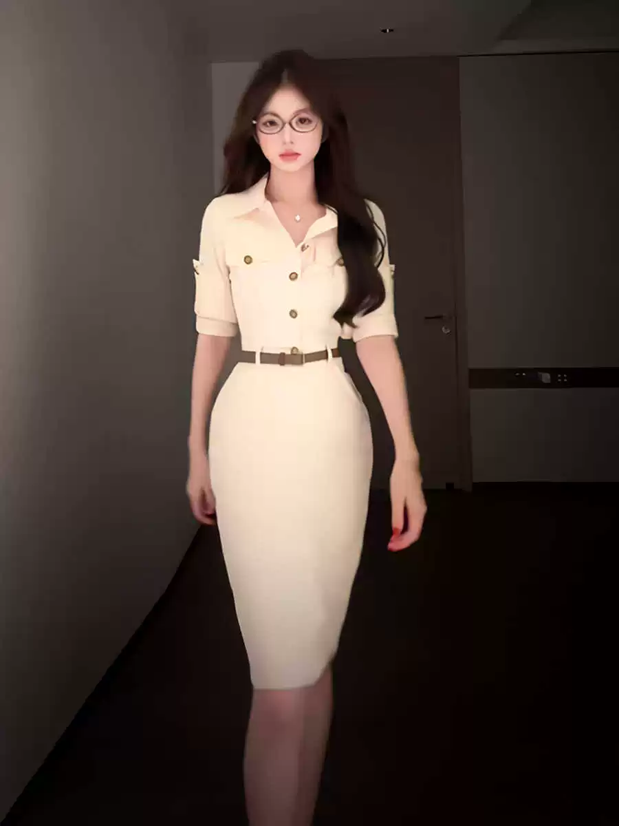 | nameOriginal | This year's popular POLO collar light workwear style skirt French retro Hong Kong style waist slim fit hip dress for women |