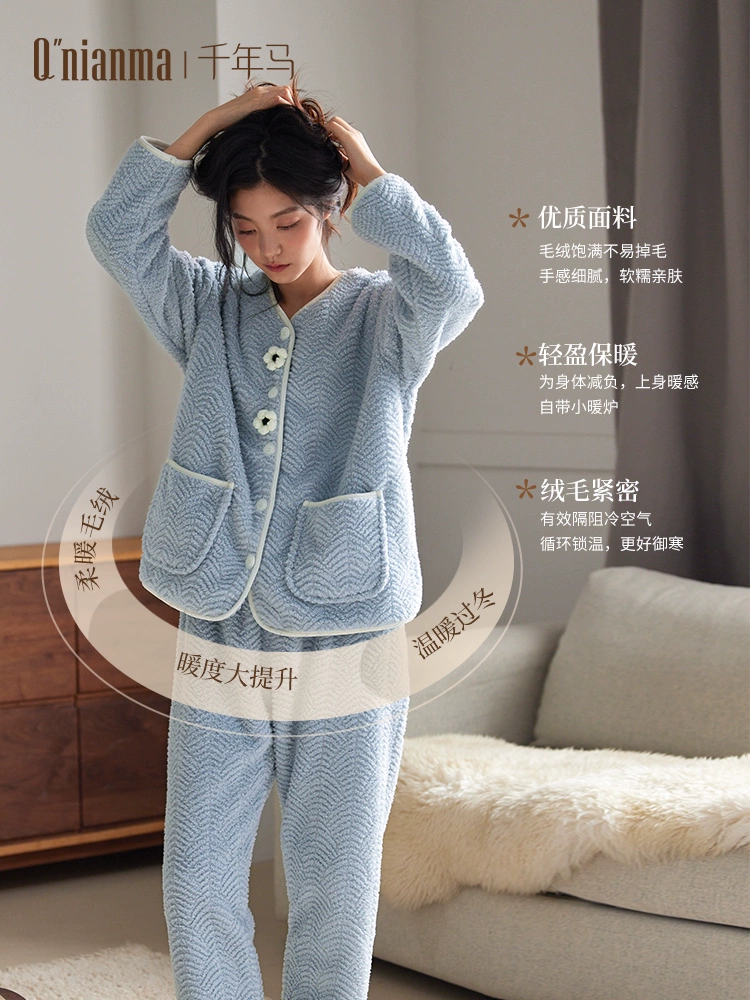 | nameOriginal | Thousand-year-old horse coral velvet pajamas for women in autumn and winter, plus velvet and thickening, can be worn outside in winter, flannel warm home clothes set |